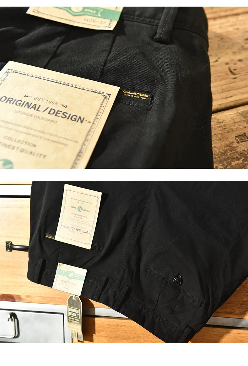 2025 Men's Cotton Vintage Cargo Pants Spring Autumn Fashion Beading Design Solid Baggy Pants Casual Streetwear Men Joggers Pants