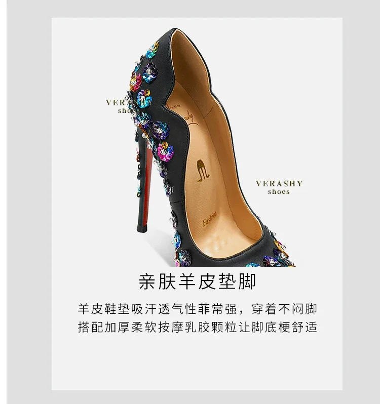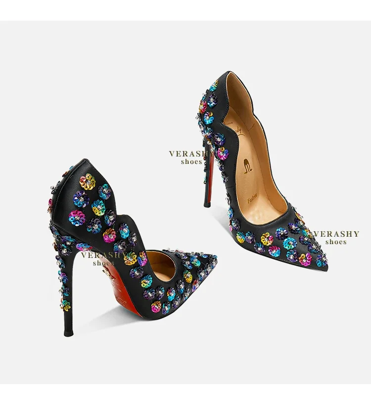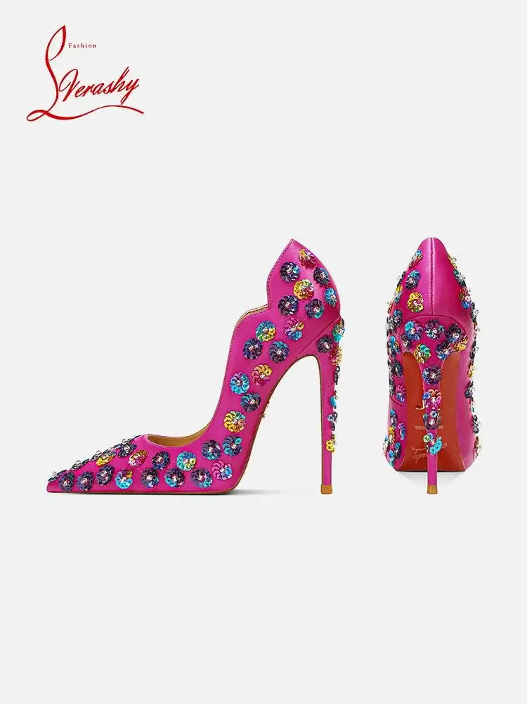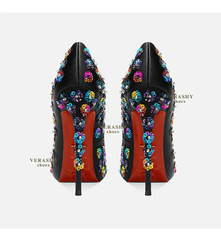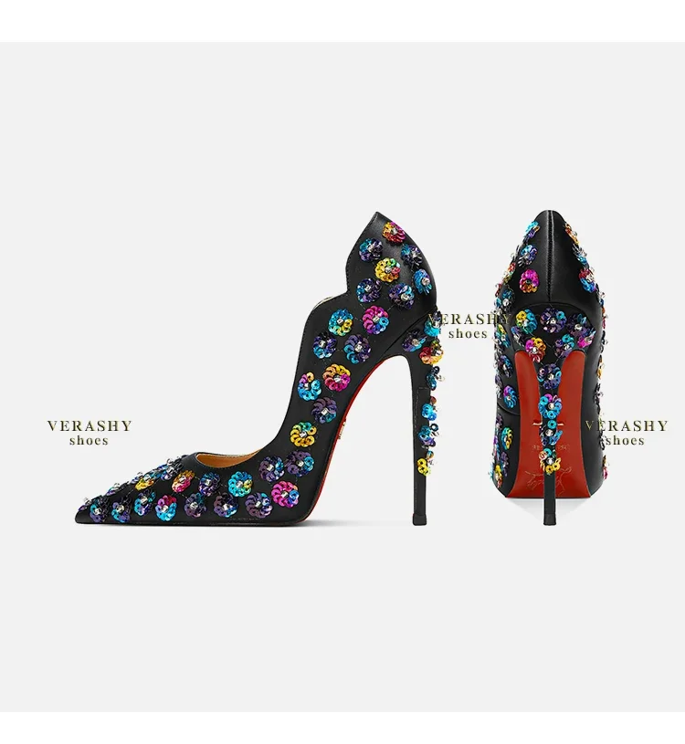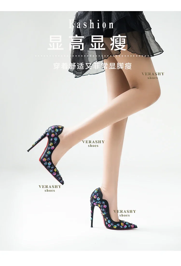 2025 Spring New High Heels Women's Embroidered Beaded Black Sexy Queen's Heel 10-12cm Pointed