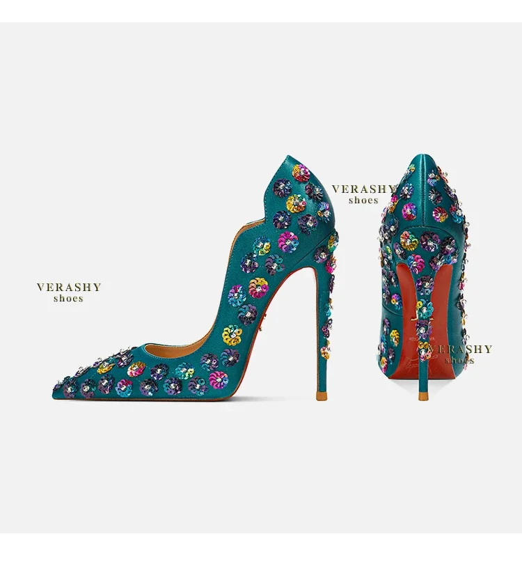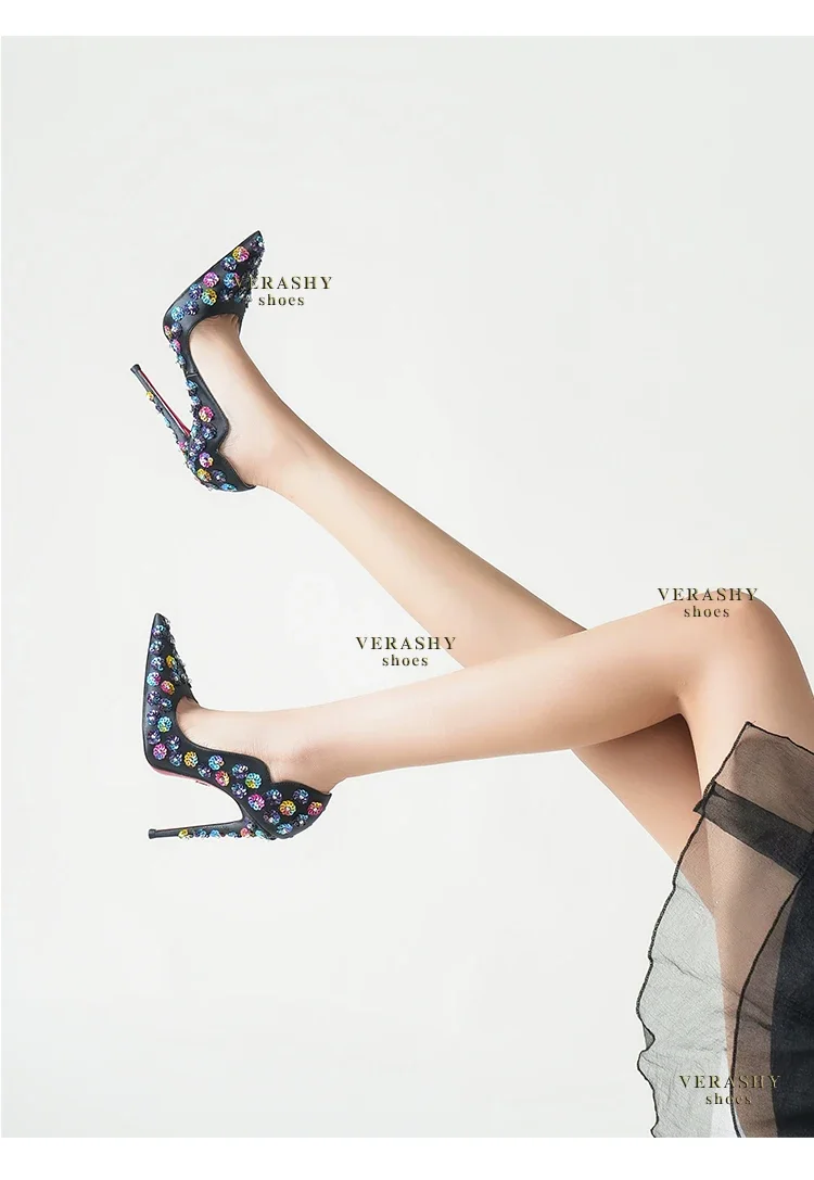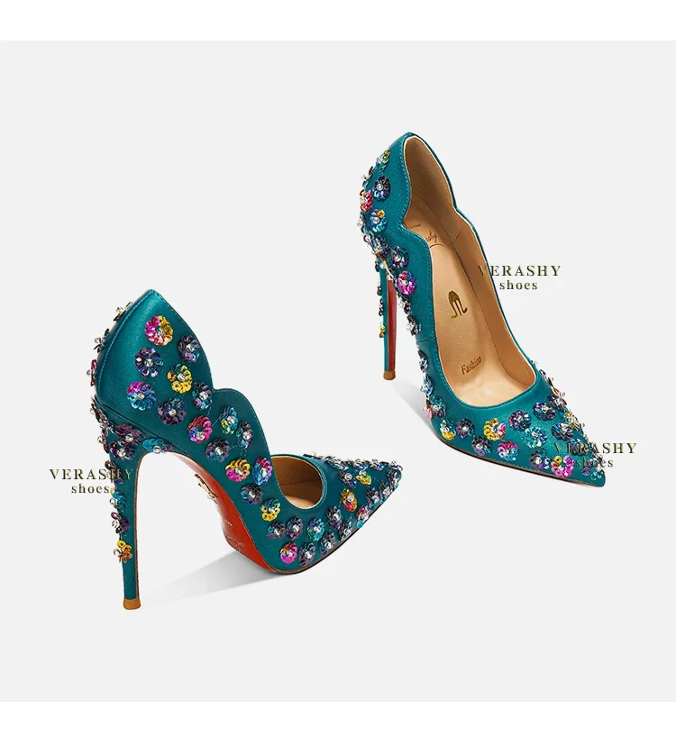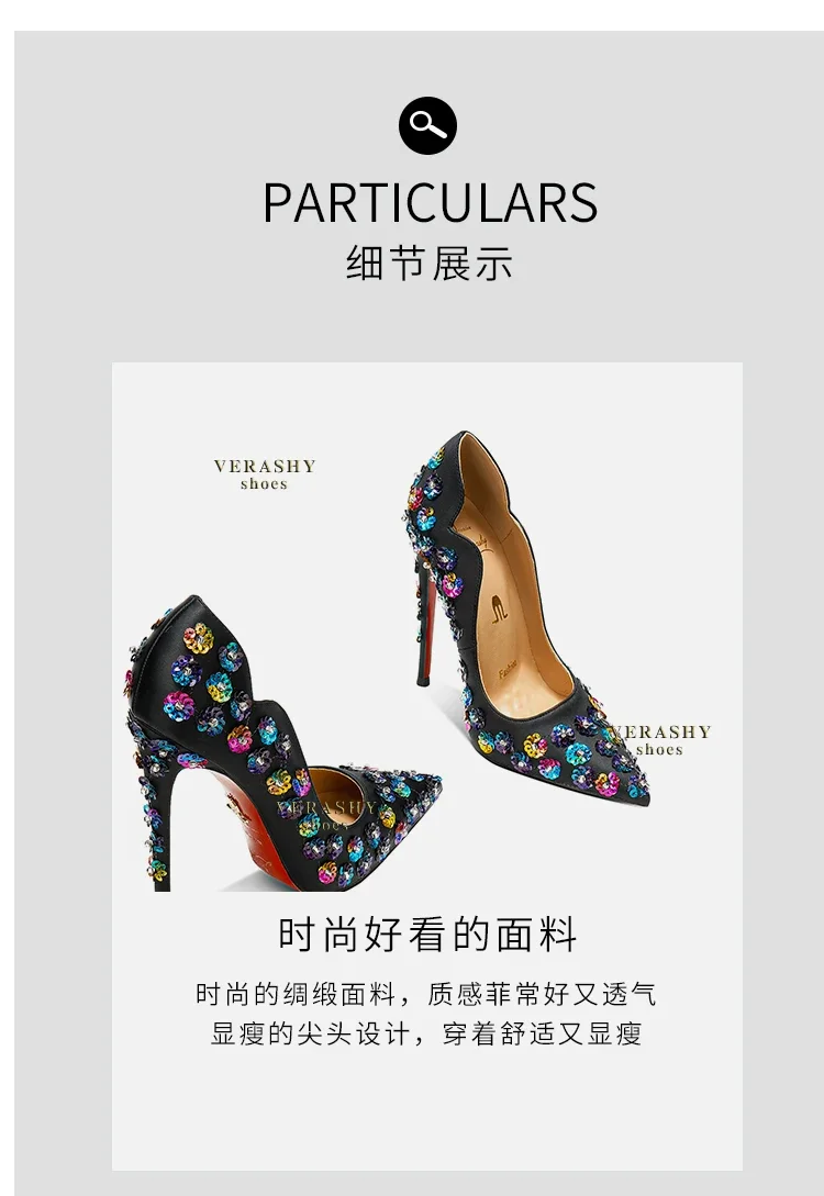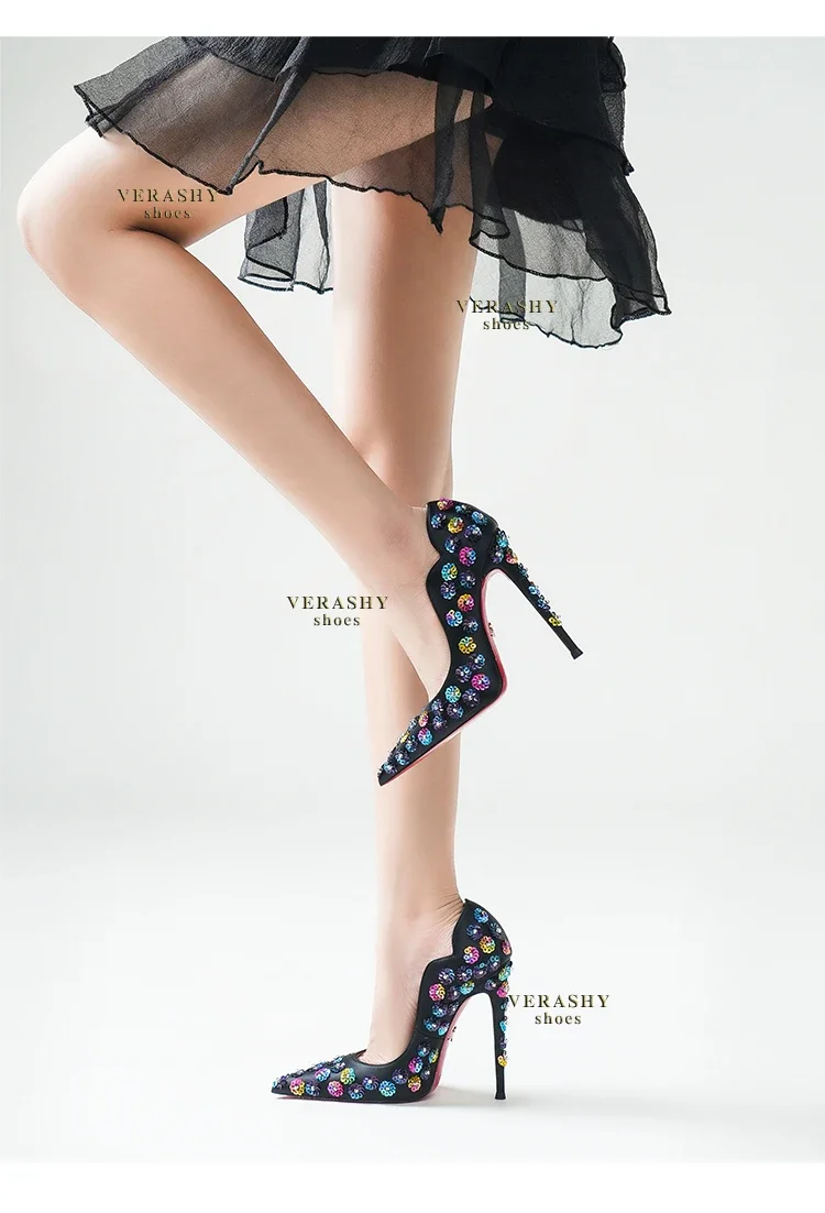 2025 Spring New High Heels Women's Embroidered Beaded Black Sexy Queen's Heel 10-12cm Pointed