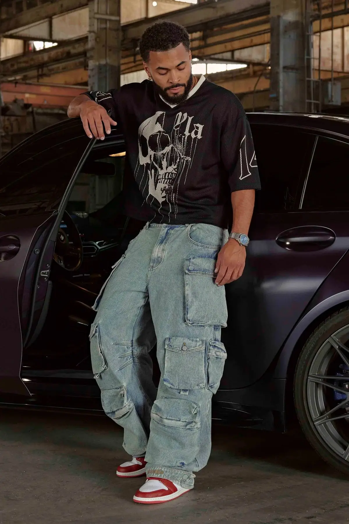 2025 YOUNG tide brand oversized T-shirt gym men's exercise and fitness quick-drying breathable large mesh printed short-sleeved