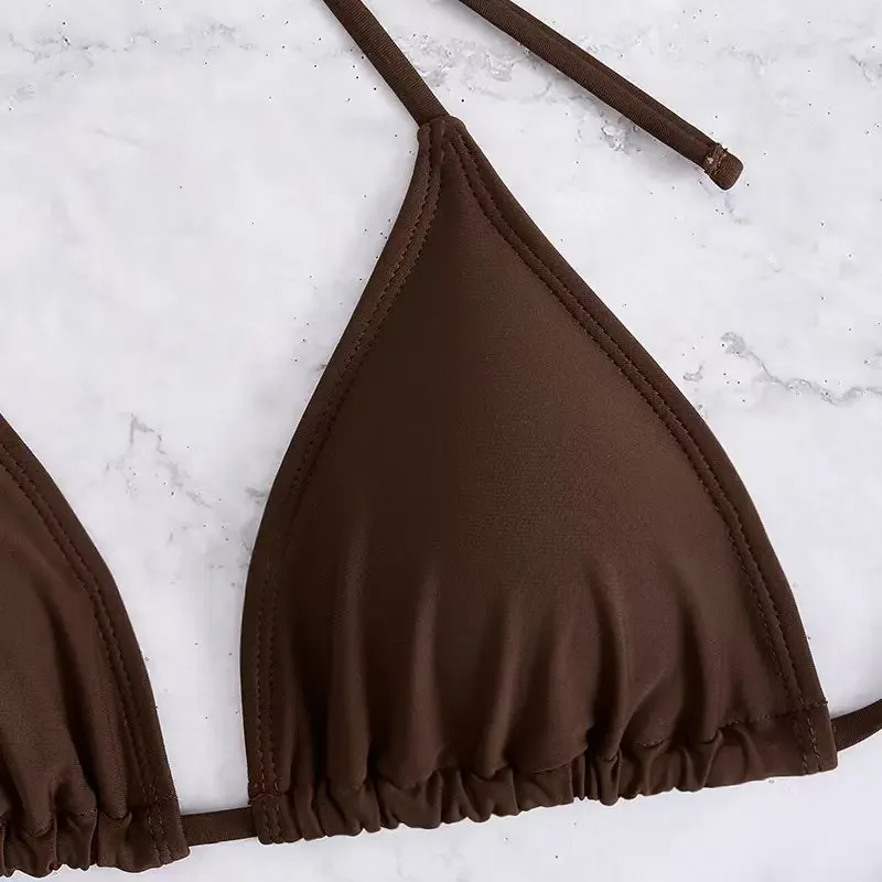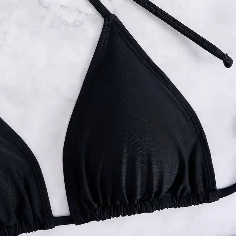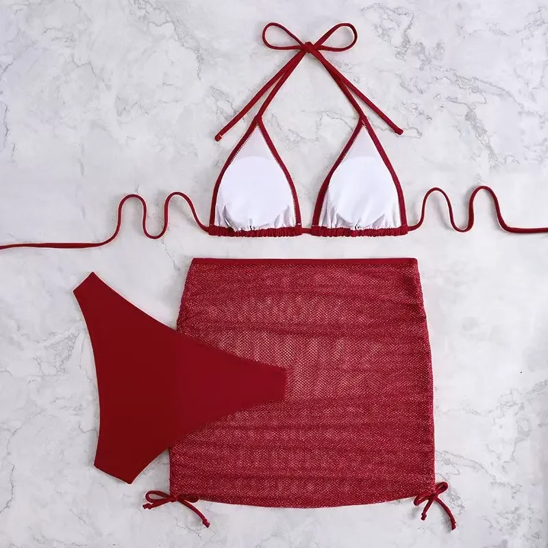 3 Pieces Solid Swimsuit Women Triangle String Bikini 2025 Sexy Swimwear Female With Drawstring Skirt Bathing Swimming Swim Suit