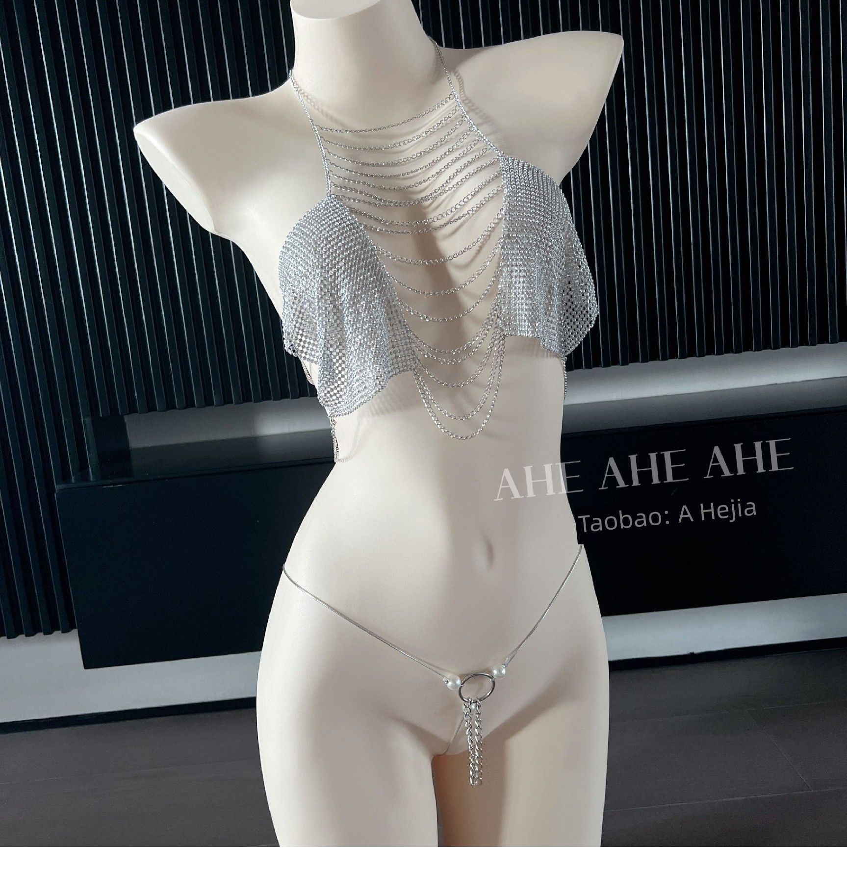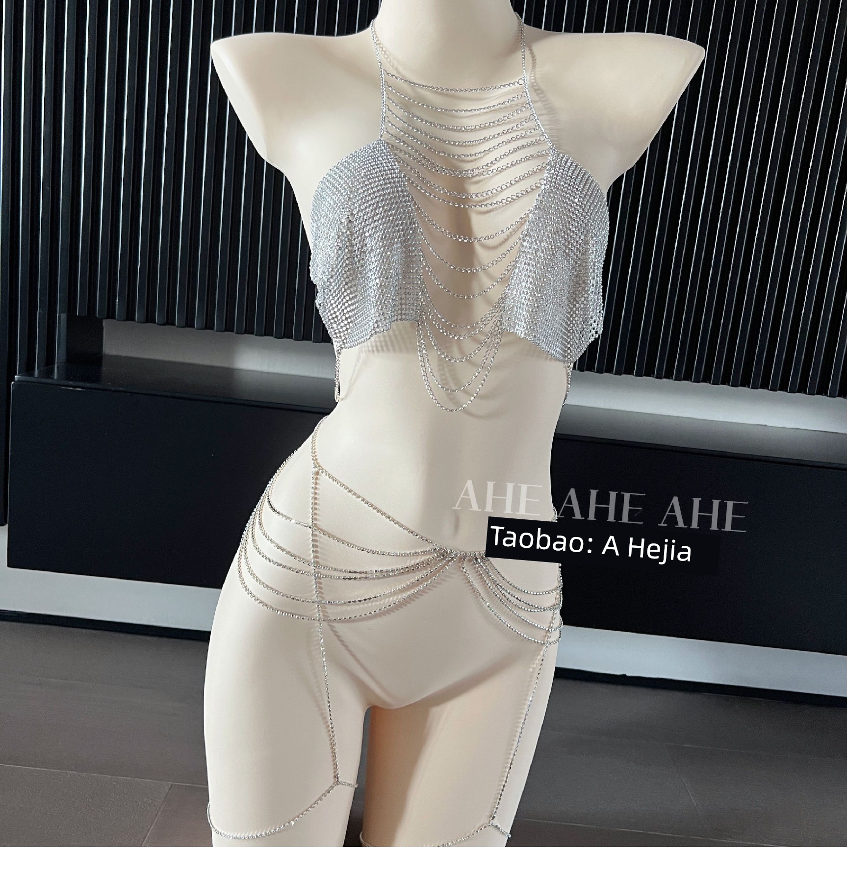 Ahejia Shiny Chain Corset Bra Bra Qqny Women's Bikini Uniform Gold and Silver Bikini Intimates Pajamas