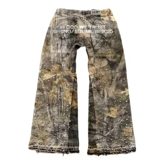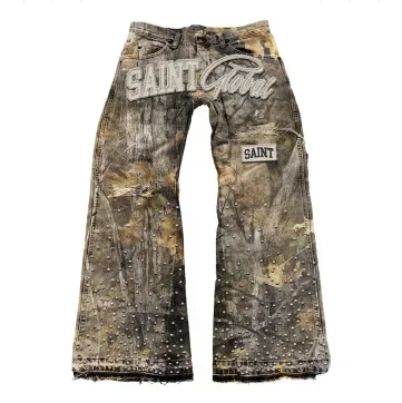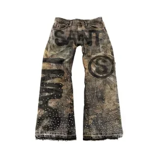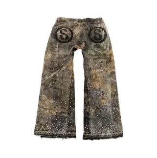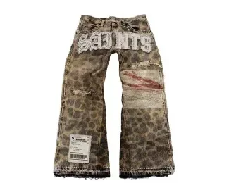 American-style classic style leopard letter rivet straight jeans men and women summer retro punk rock low waist wide-leg pants