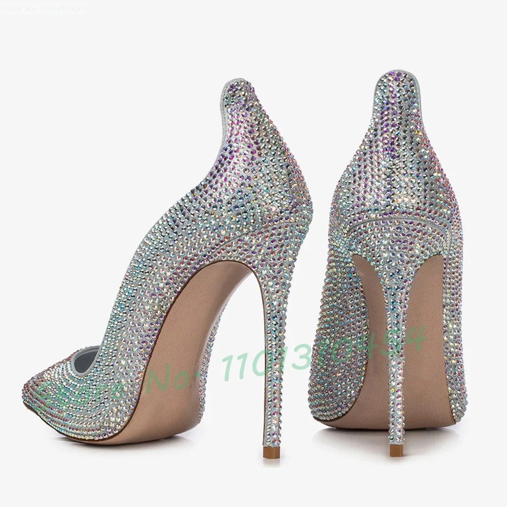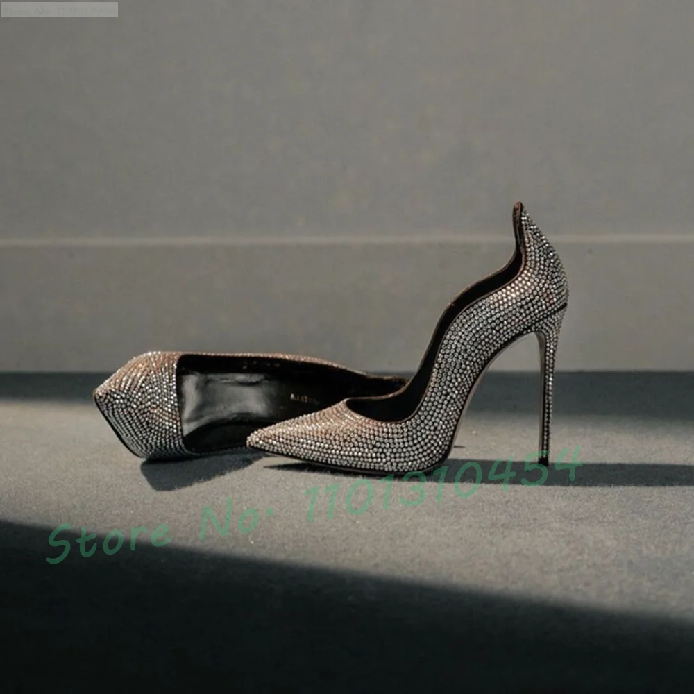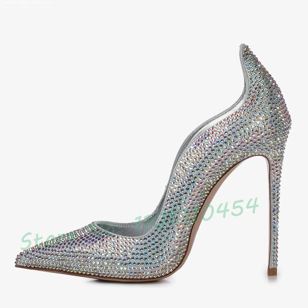 Crystal Glitter Curved Pointy Pumps Women 2025 Sparkly Stiletto High Heels Party Shoes Luxury Shiny Leather Ladies Wedding Pumps