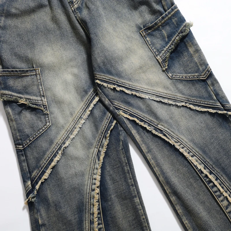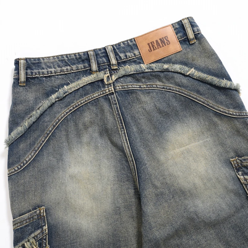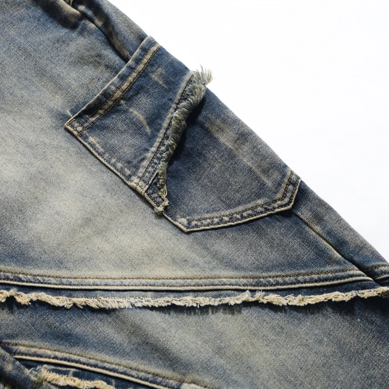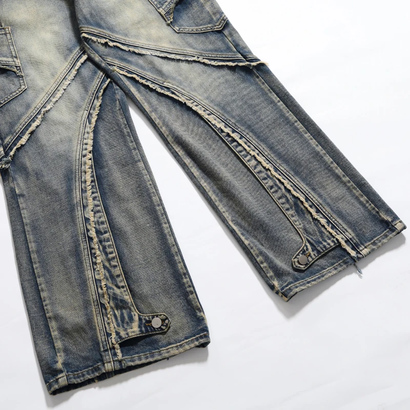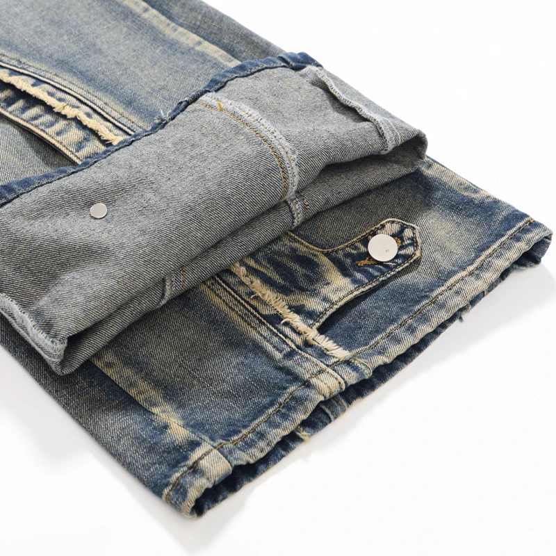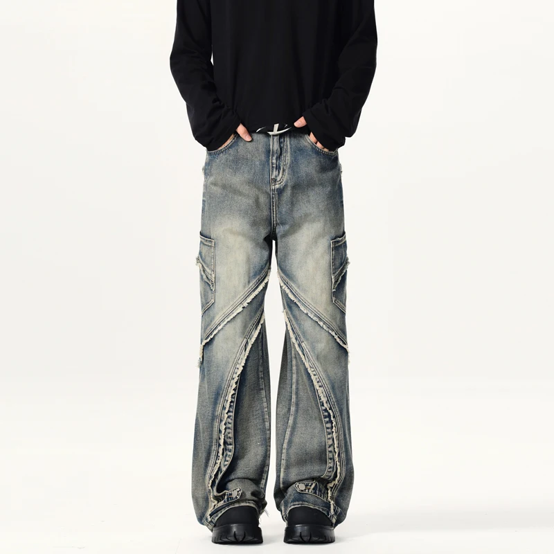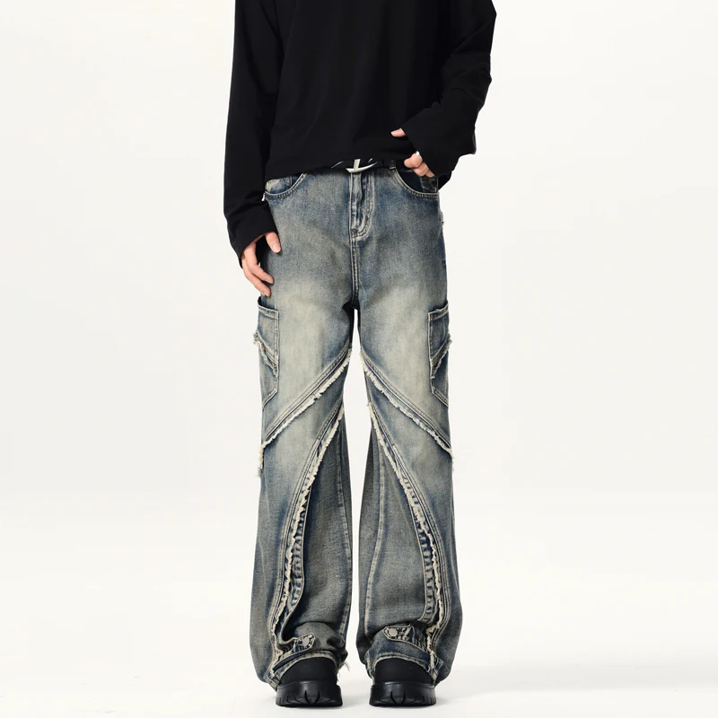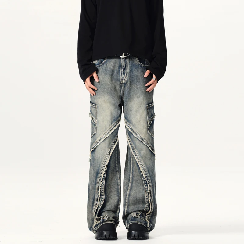 Custom Men's Baggy Jeans Versatile Loose Pants Irregular Stitching Wide Leg Winter Washed Techniques Solid for Spring Summer