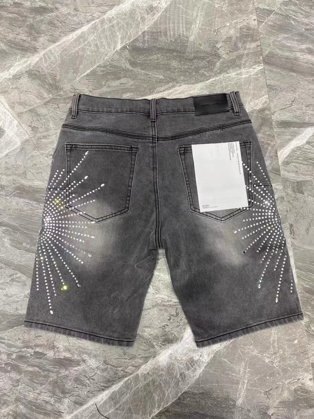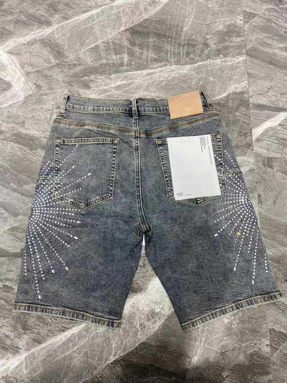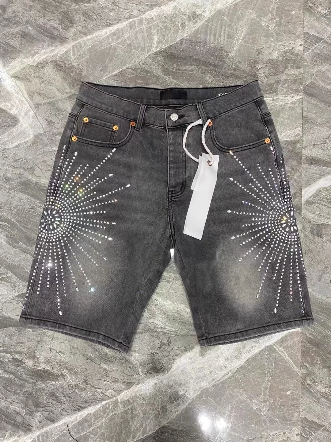 Denim Shorts Mens Women with Stunning Rhinestone Sunburst Design High Quality Casual Summer Shorts Available in Blue and Gray