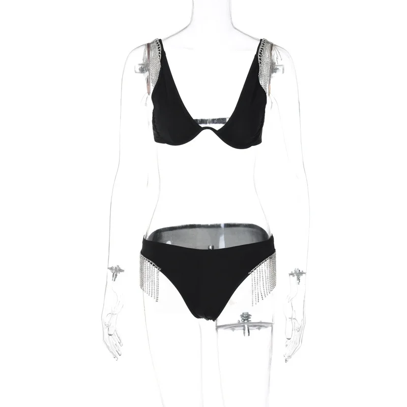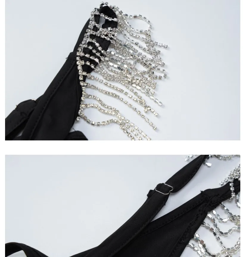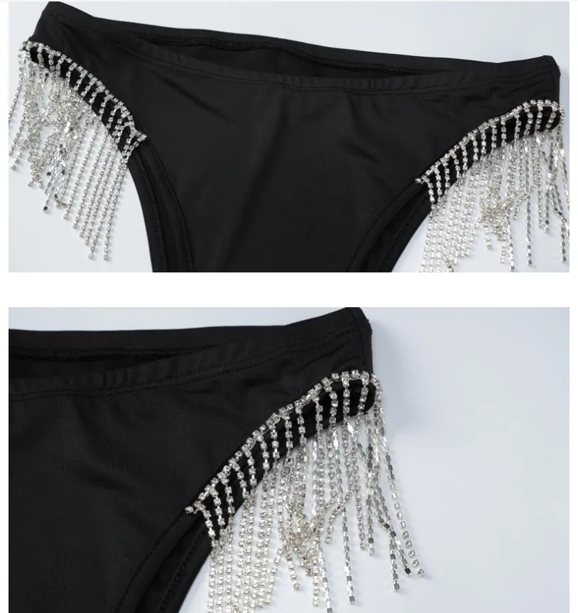 Fall 2022 Women Clothes Fringe Drill Chain Suspenders Split Bikini Two Piece Set Beautiful Black Women Bikinis