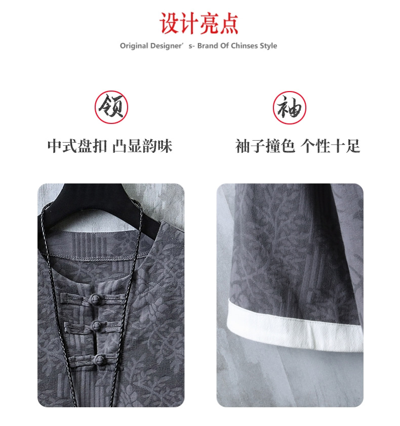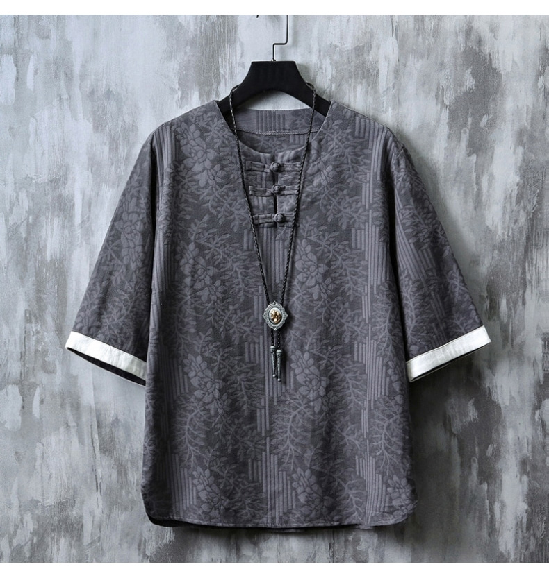 Linen Short Sleeve T-Shirt Men's Chinese Style Summer Men's Jacquard Oversized Half-Sleeve Top Retro Cotton and Linen Han Costume T-shirt