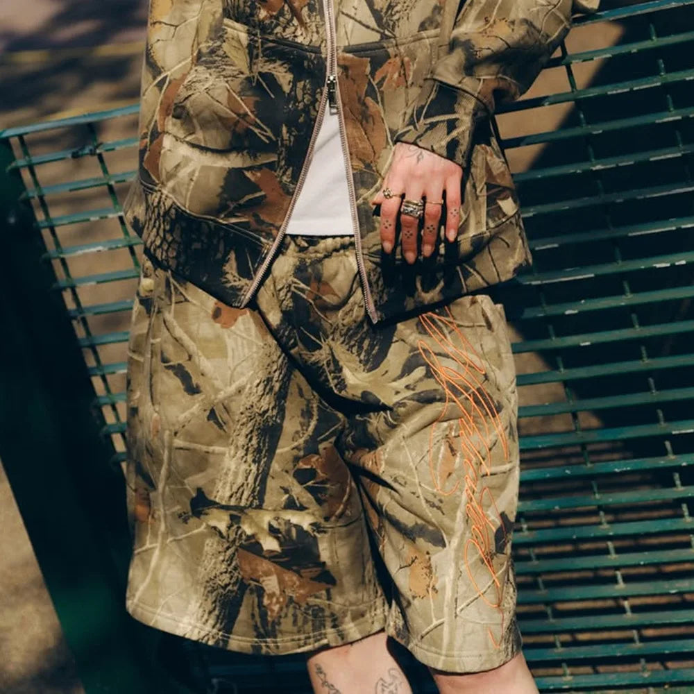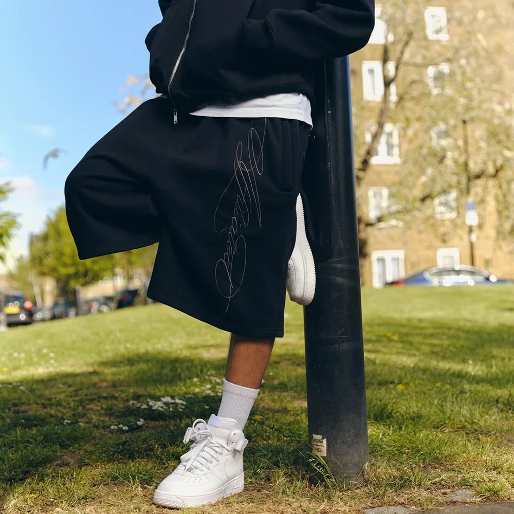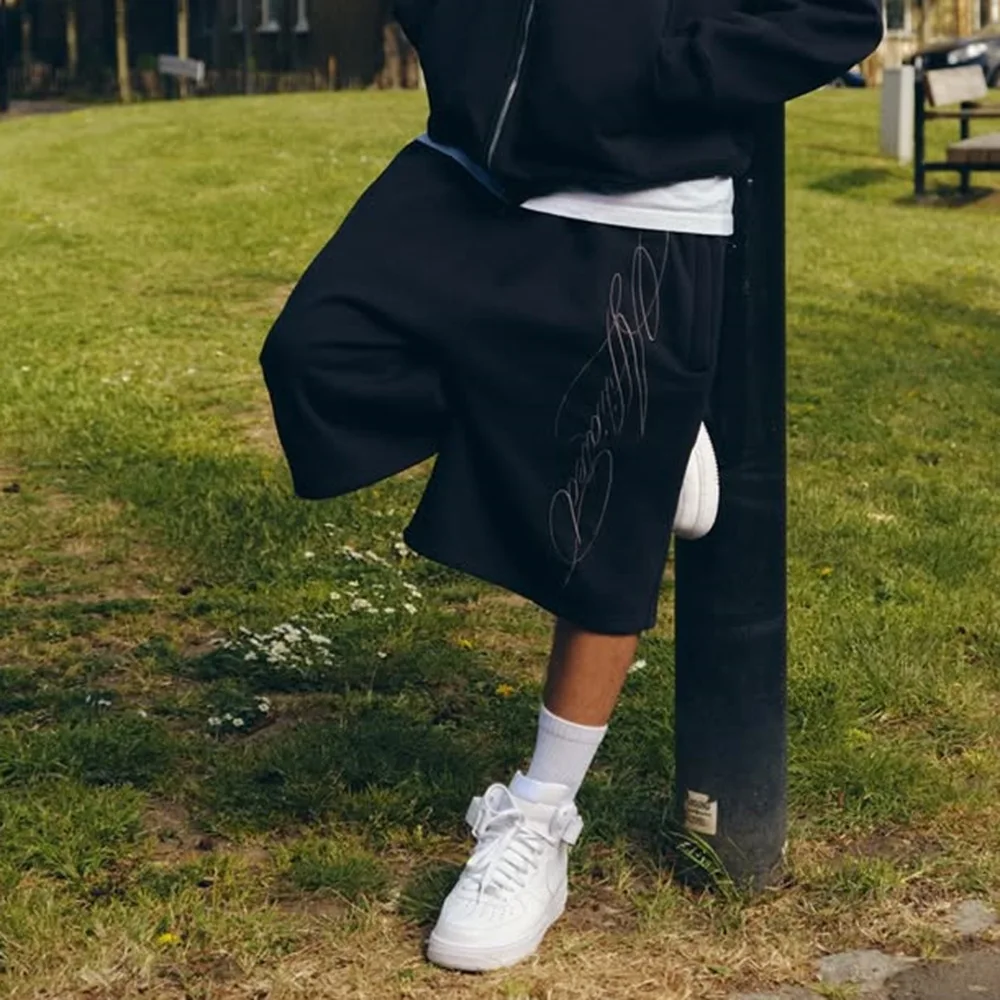 Men's American Retro Hip Hop Embroidered Pentagram Shorts Summer Casual Loose Fit Mid-Trendy Pants
