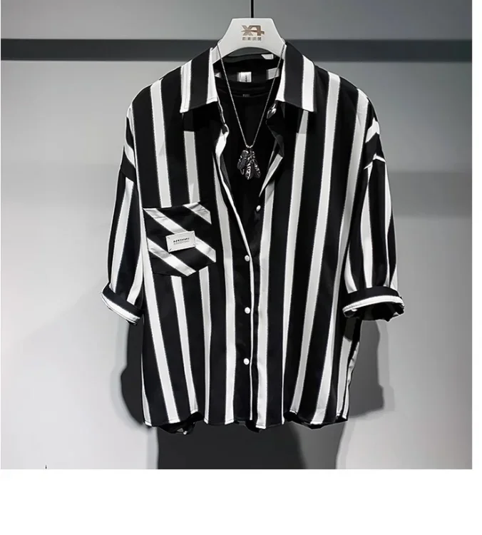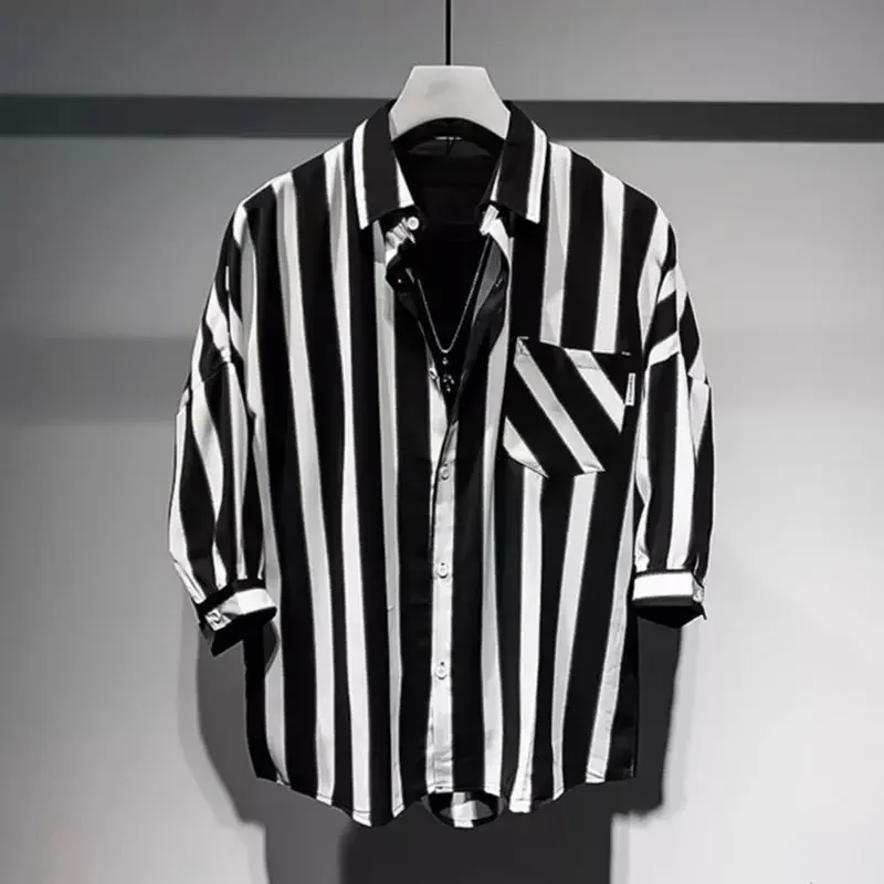 Men's Clothing Japanese Style Vintage Stripe Shirt Summer New Casual Loose Fit Lightweight Minimalist Trendy Top