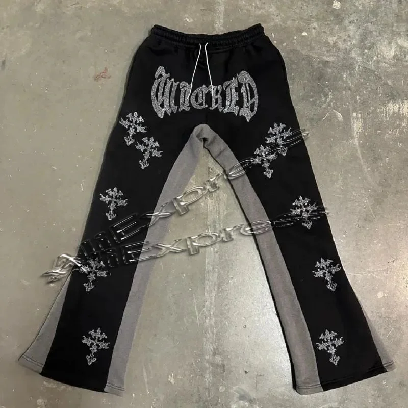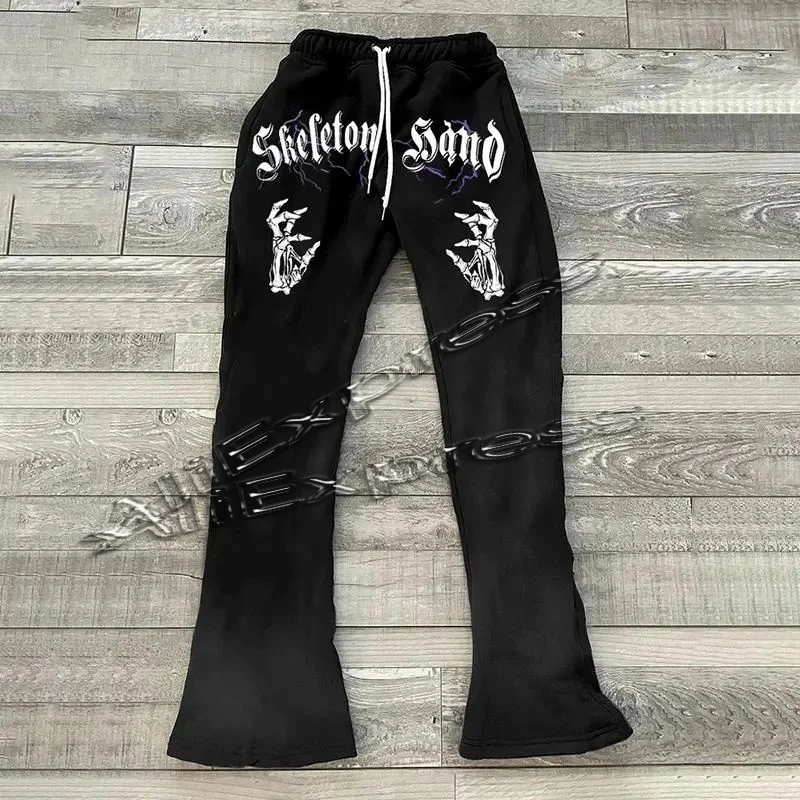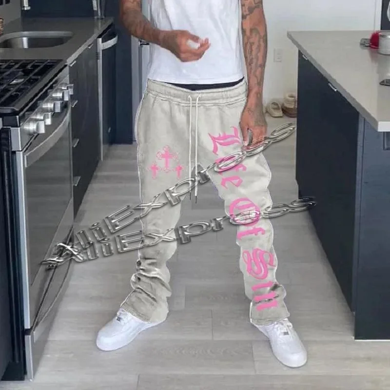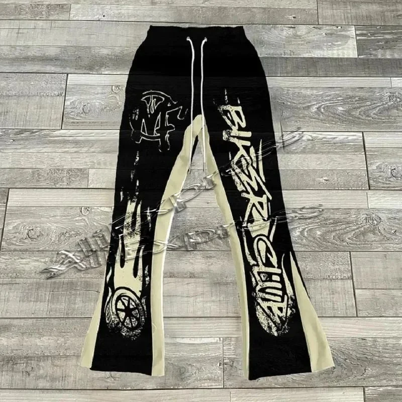 Men's Pants Y2k Flared Hip Hop Men Loose 3D Print Trousers Casual Sweatpants Mid Waist Sporty Female Streetwear Vintage moto
