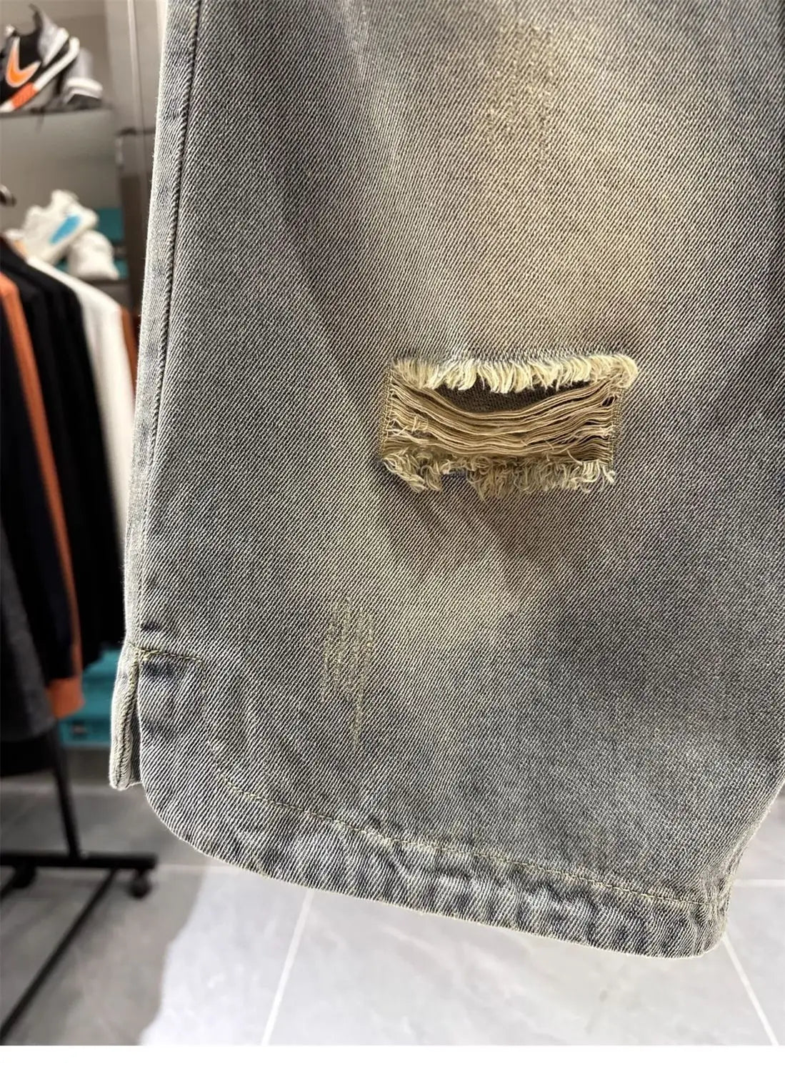 Men's Ripped Denim Shorts American High Street Loose Straight Washed Old Retro Versatile Casual Five-point Pants Jorts Man