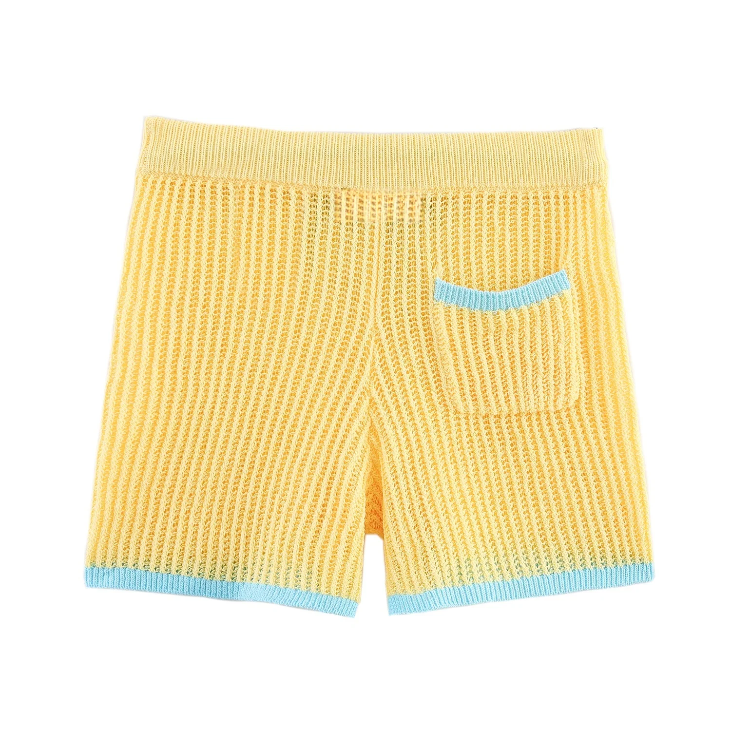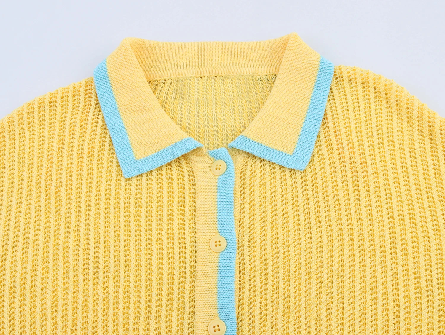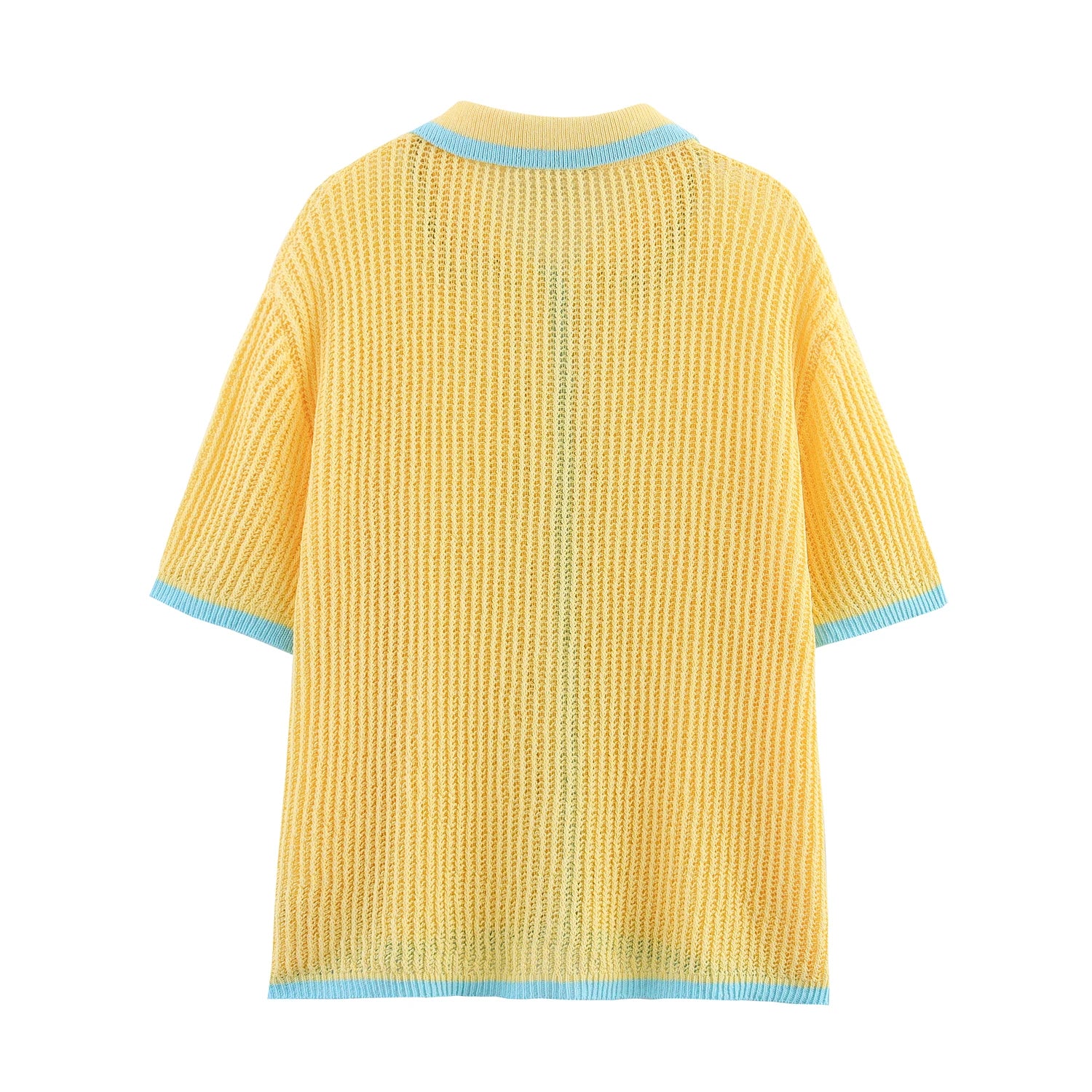 MYST&ZA2025 Summer New Products Women's Casual Knitted POLO Shirt Jacket Top + High Waist Knitted Shorts Set