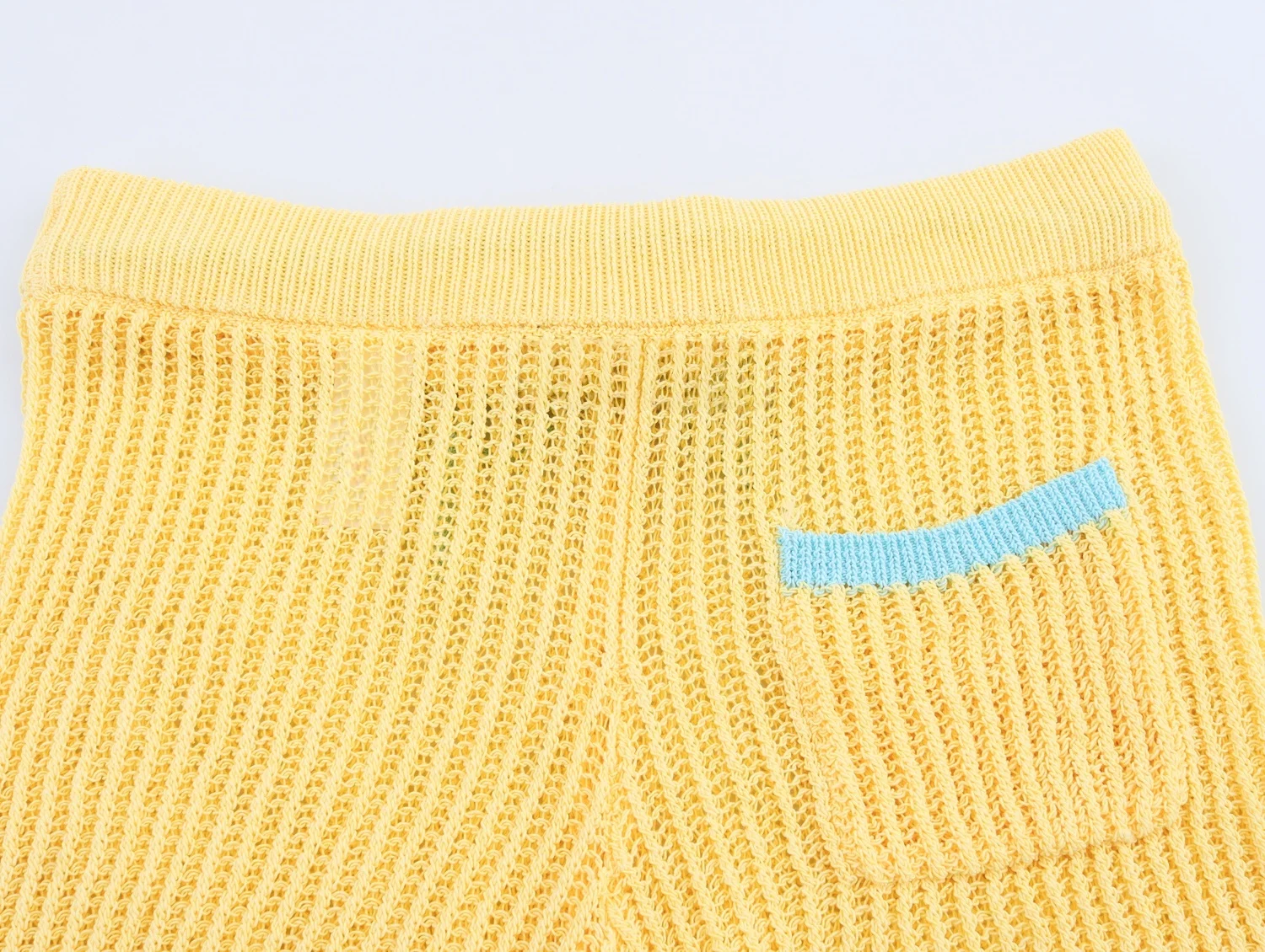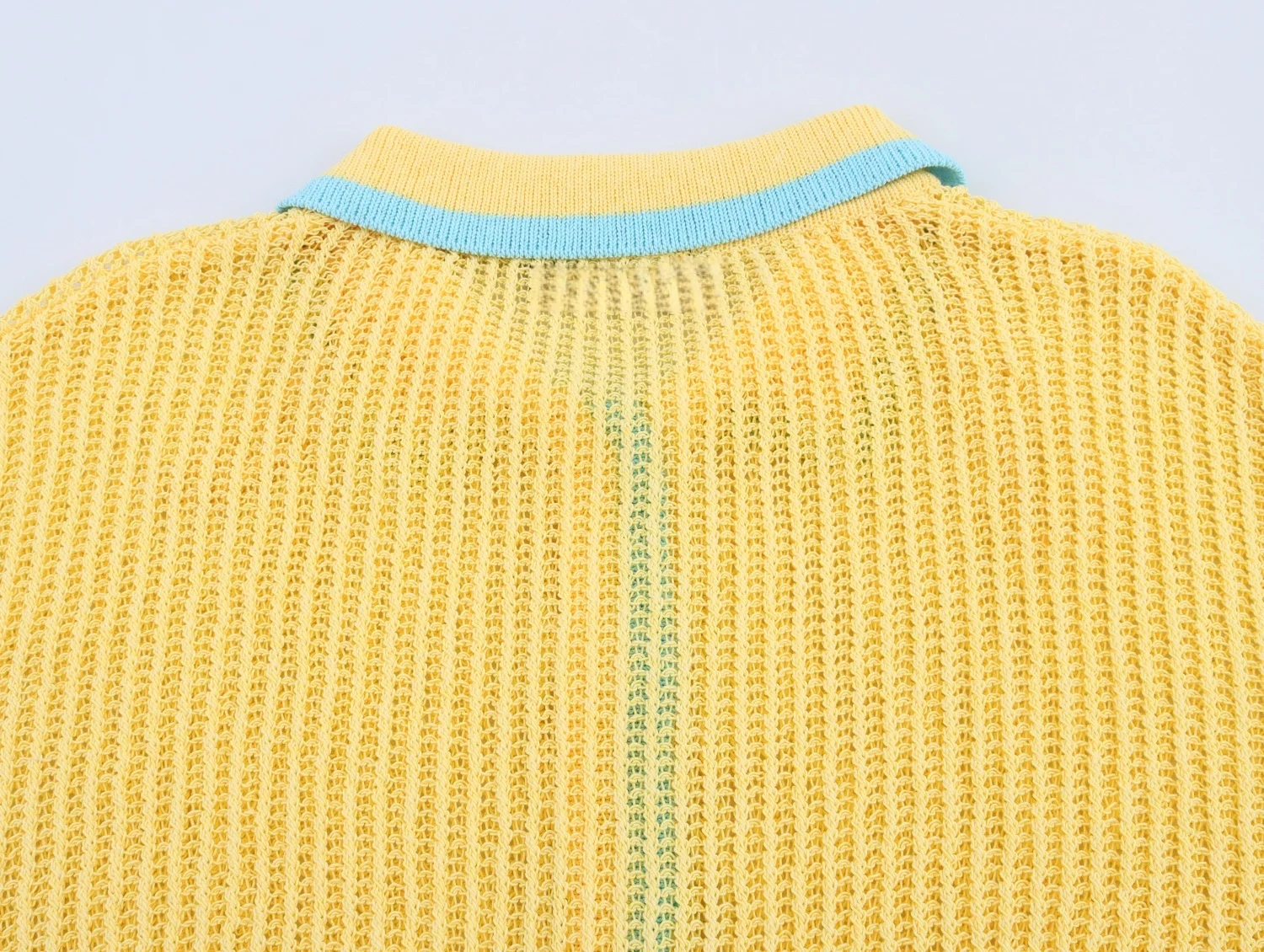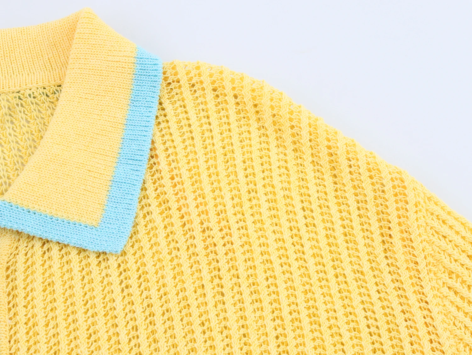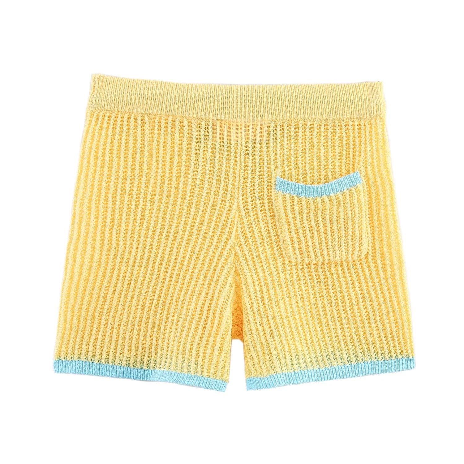 MYST&ZA2025 Summer New Products Women's Casual Knitted POLO Shirt Jacket Top + High Waist Knitted Shorts Set