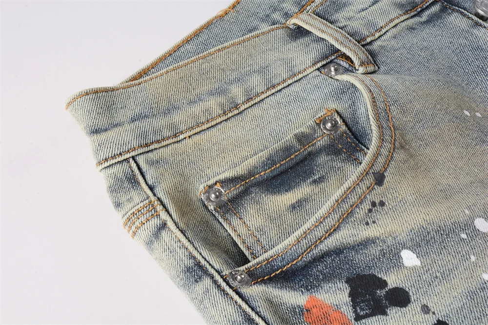 New jeans Men Fashion Americans High Street Retro Wash Distressed Graffiti Ripped Hole Patch Stretch Skinny Jeans Brand pants