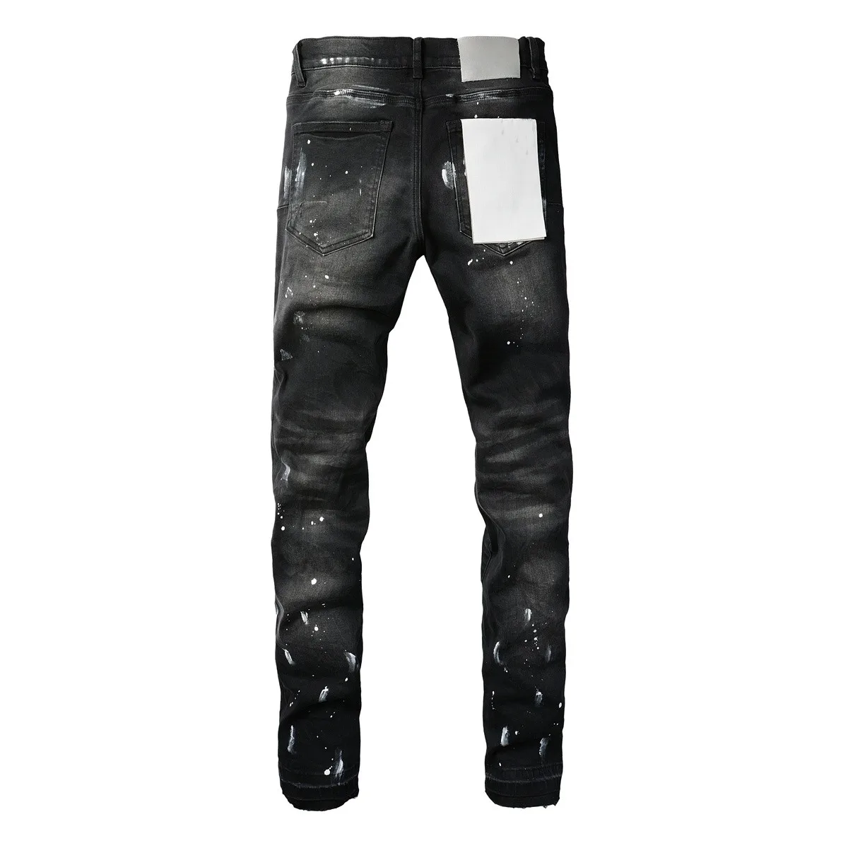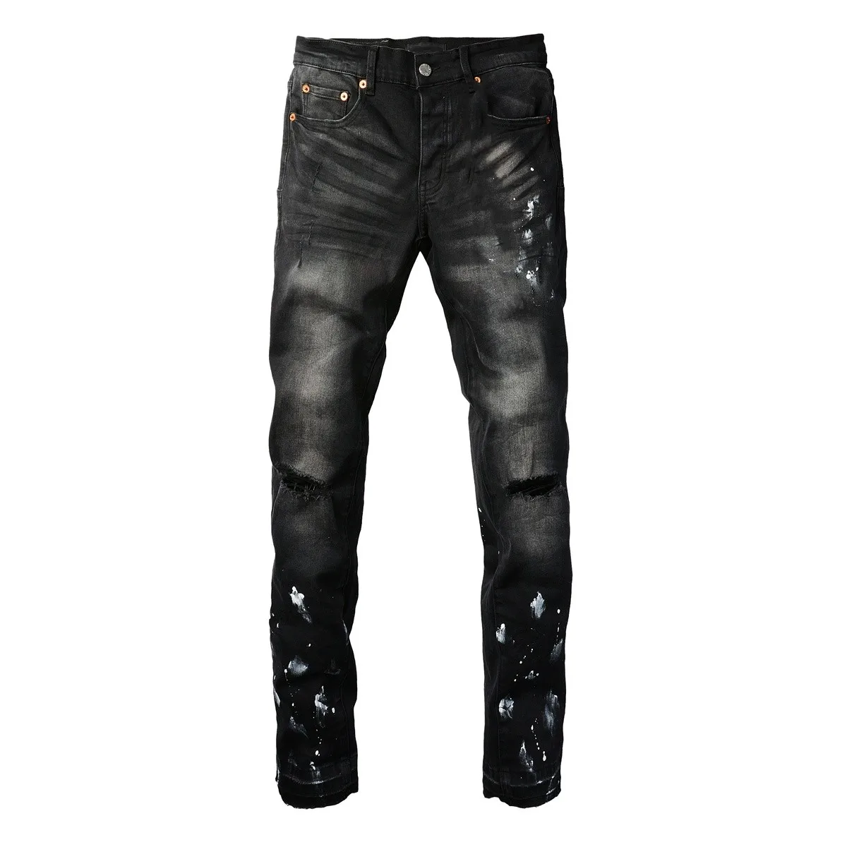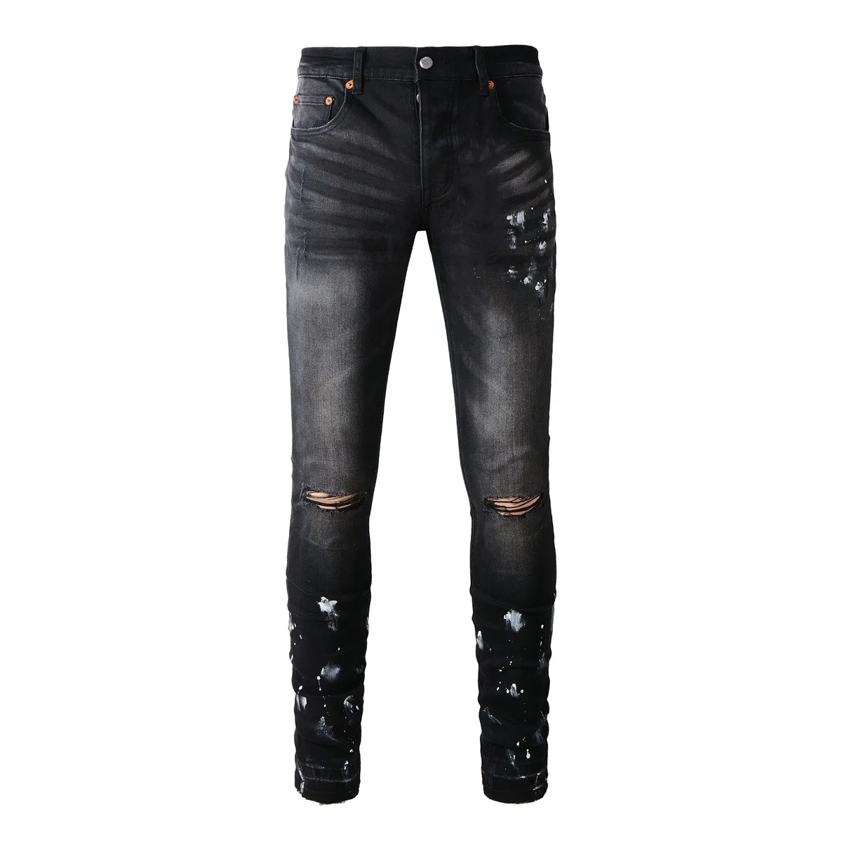 New Jeans Men Fashion Trend Daily Casual Black Paint Hole Straight Leg Pants Hip Hop Elastic Skinny Ripped jeans Brand pants