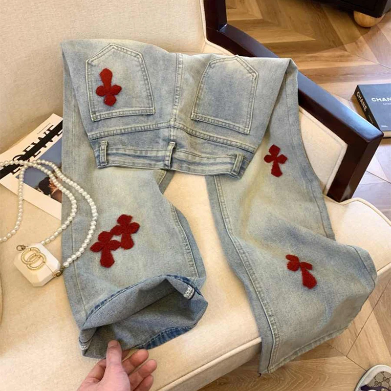 New Lady's Jeans Embroidered Pattern Women's Jeans Spring And Summer Edition Washed High Waist Wide Leg Straight Leg Floor Pants