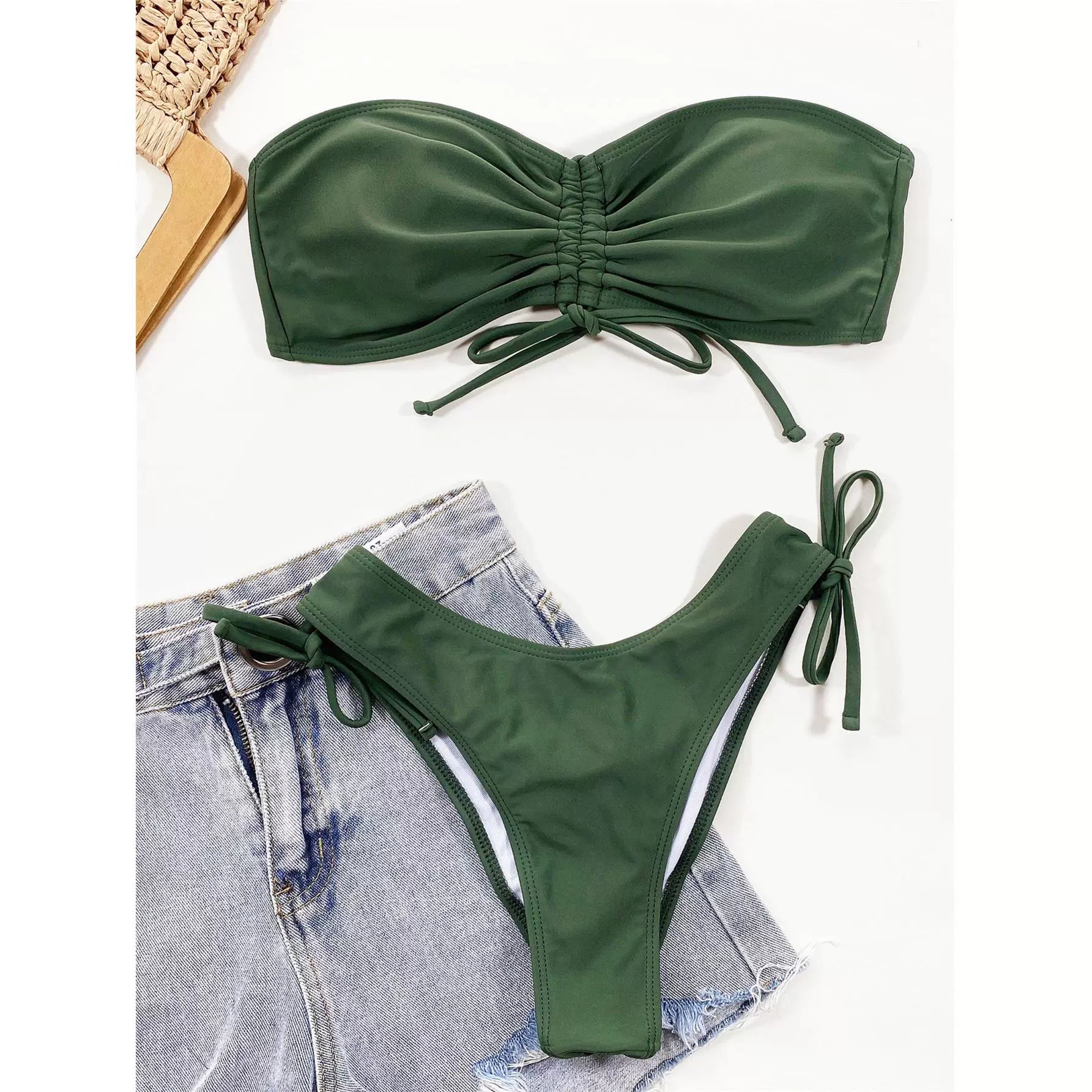 Pleated Bikini Swimsuit Hot Sale Bikini Solid Color High-Elastic Fashion Swimsuit Tube Top Swimsuit Women