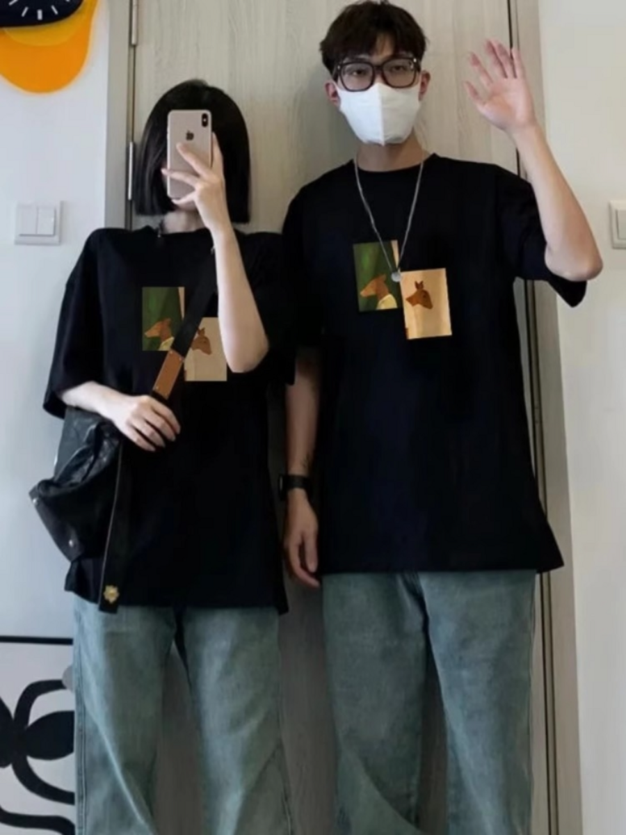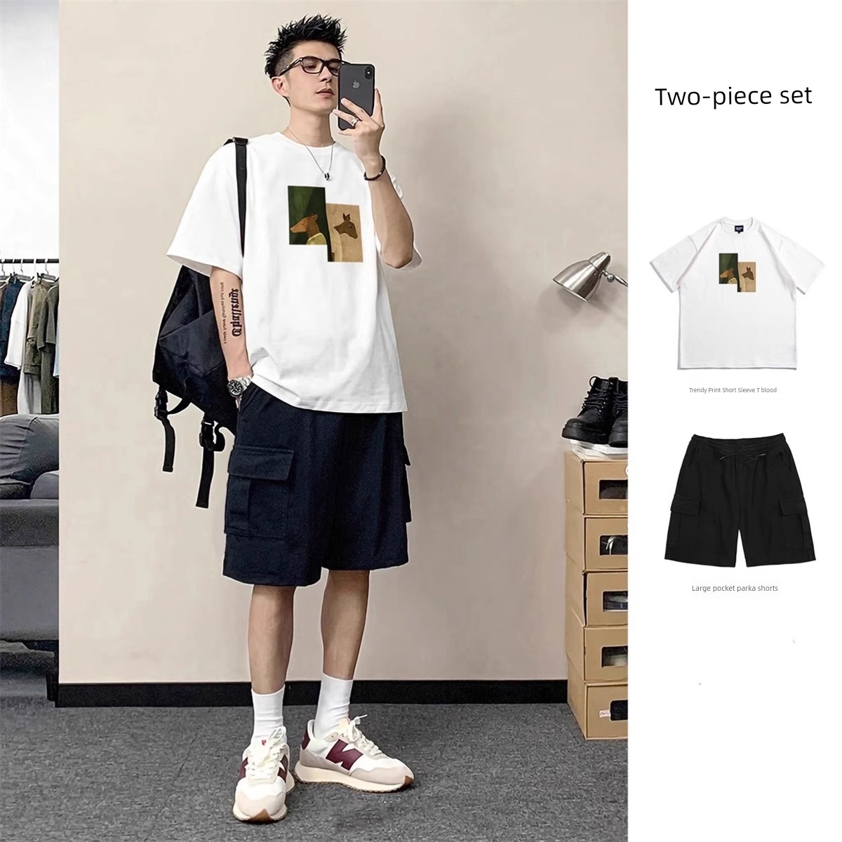 Print round Neck Pure Cotton T-shirt Men's Suit Summer Menswear a Set of Matching Parka Shorts Fashion Short Sleeve T-shirt