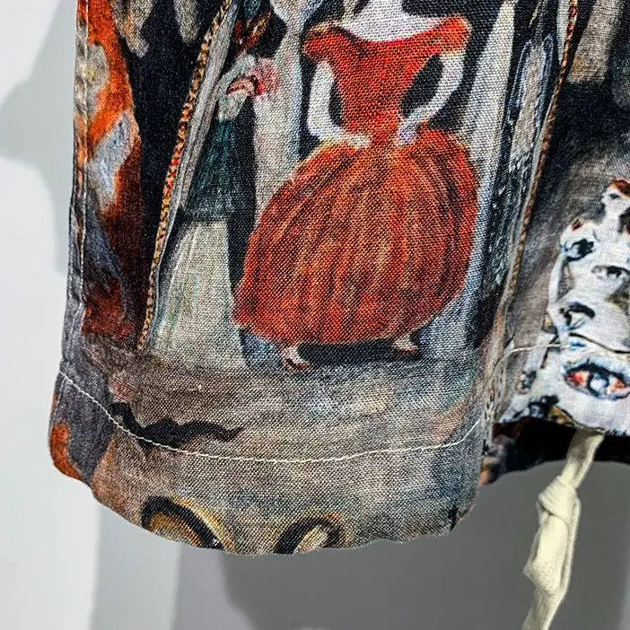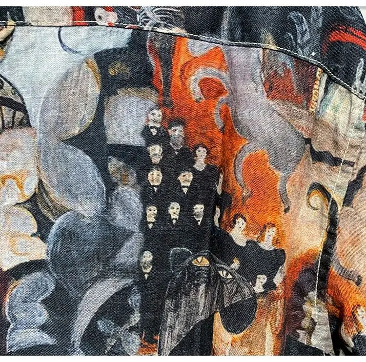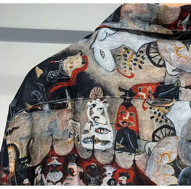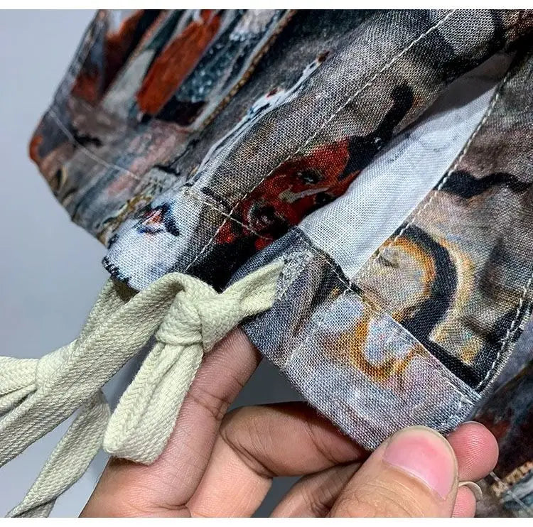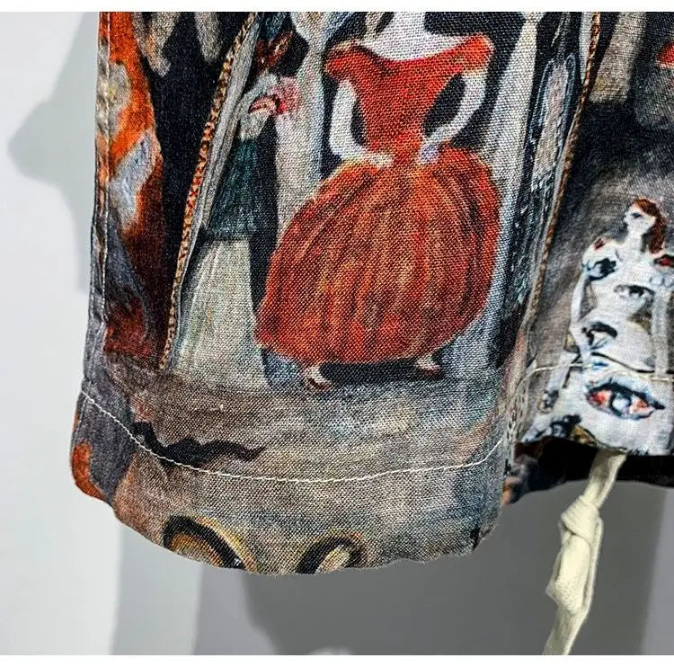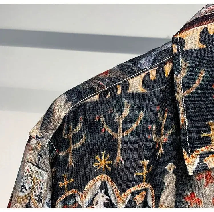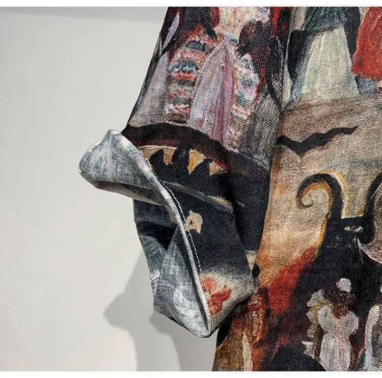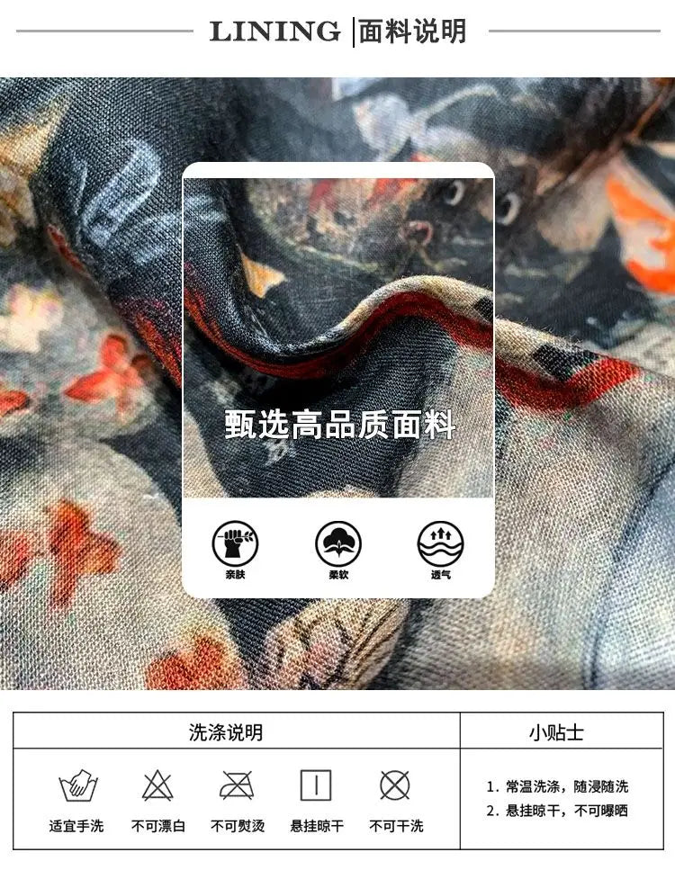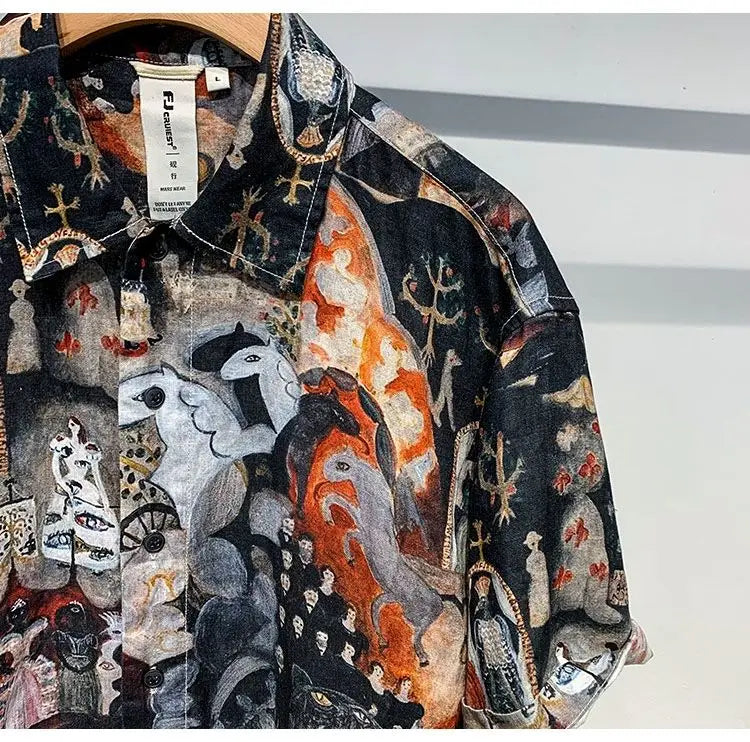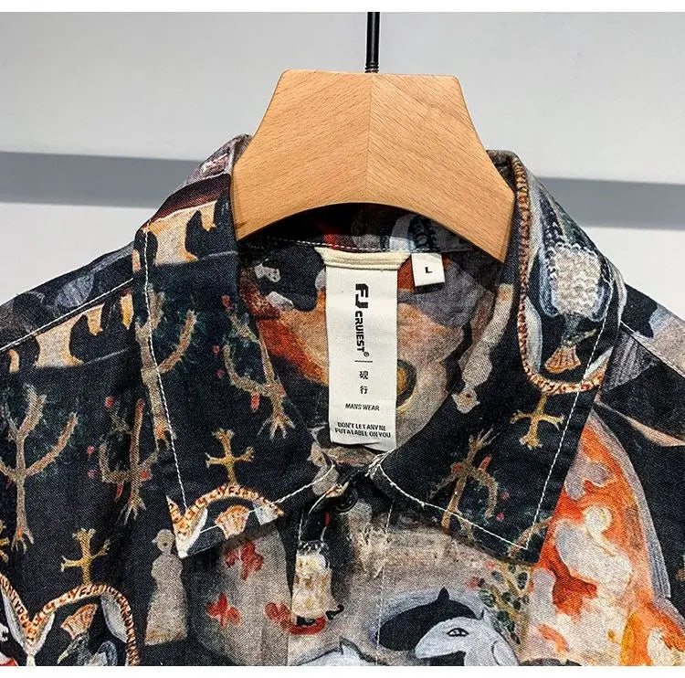 Printed Men Short Sleeved Linen Top Japanese Retro Summer Open Top Shirt