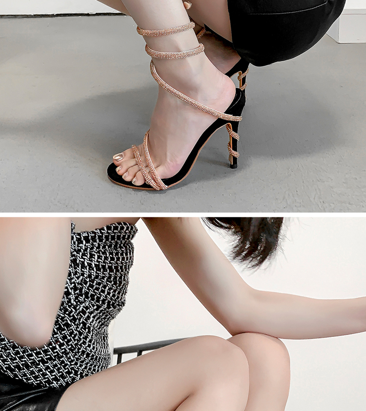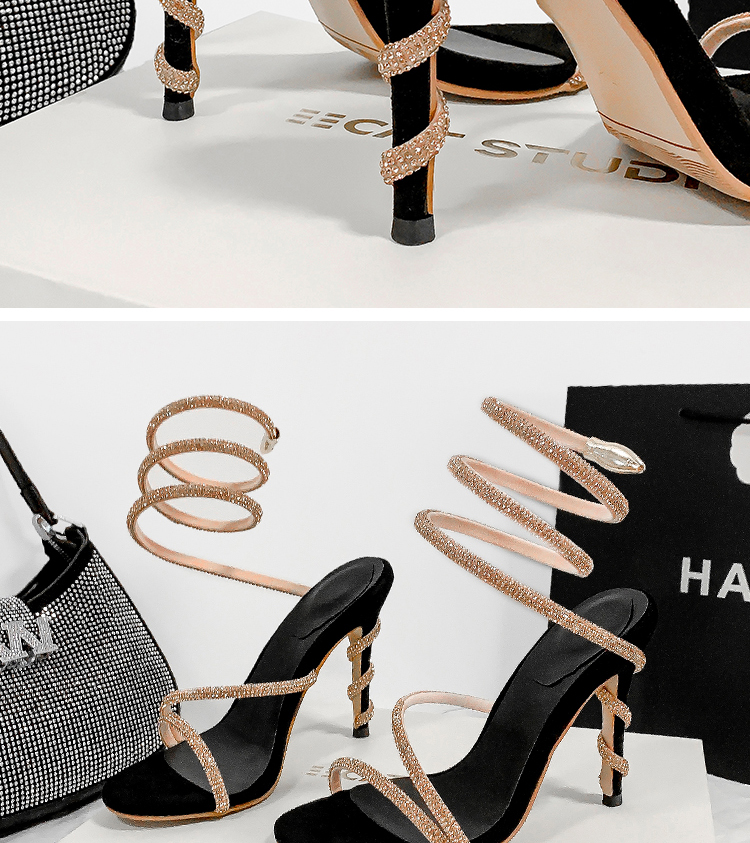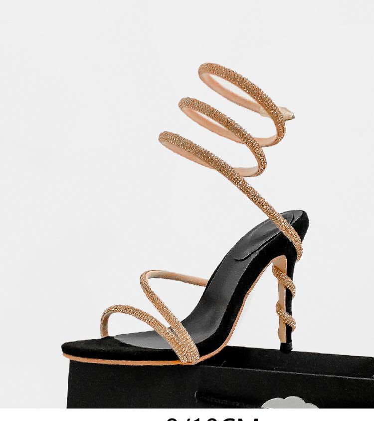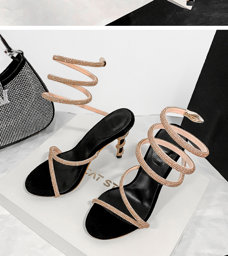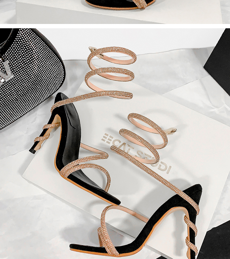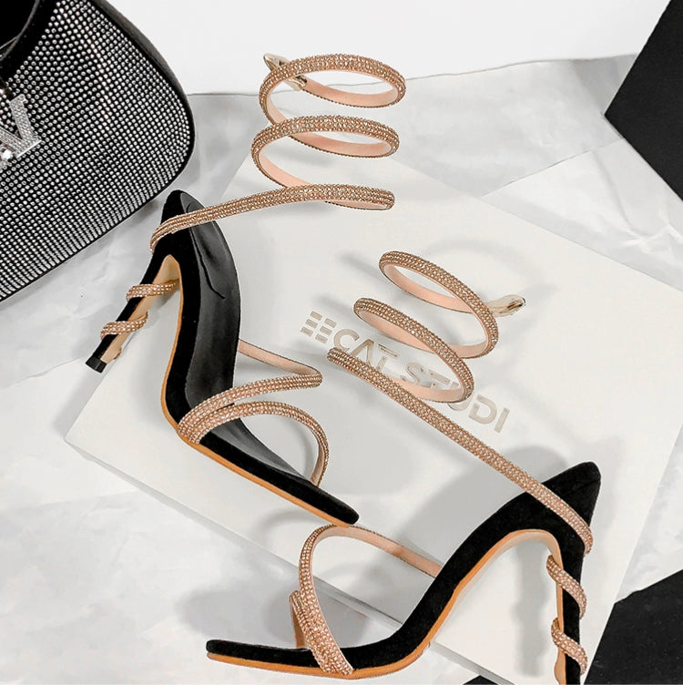 RC Banquet Snakelike Winding Strap Rhinestone High Heel Shoes