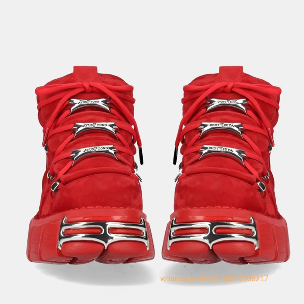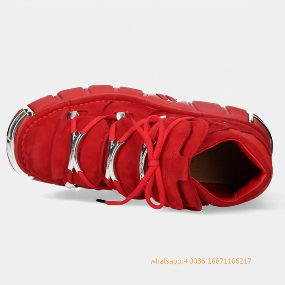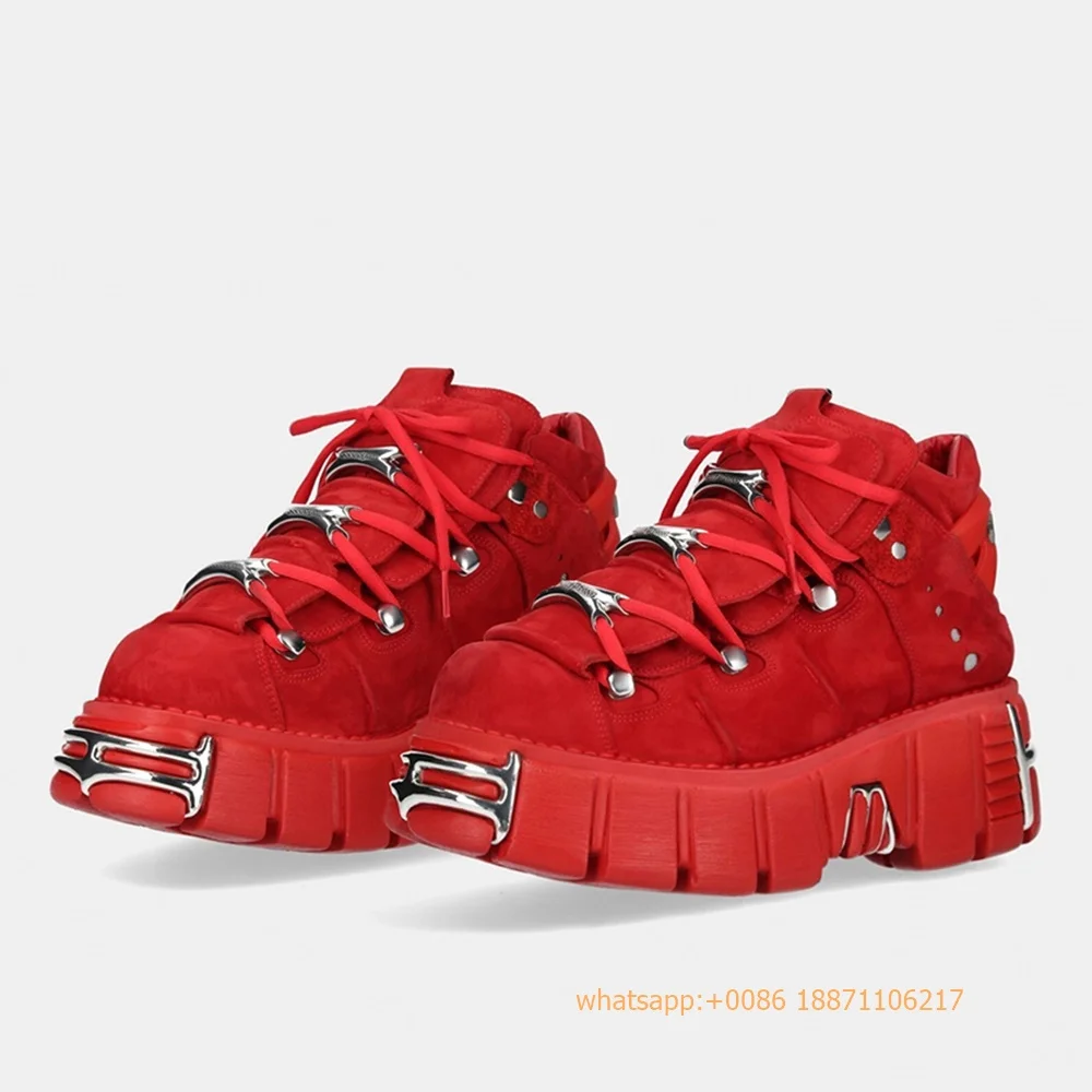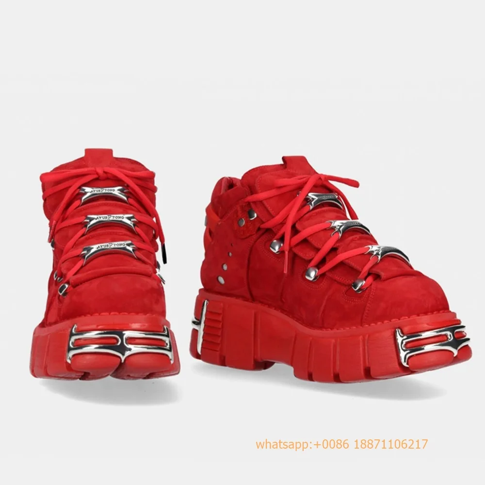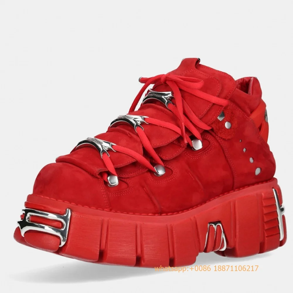 Red Metal Rivet Sports Casual Boots Fashion Women's Round Toe Lace-Up Sport Pumps 2024 New Street Rock Punk Platform Ankle Boots