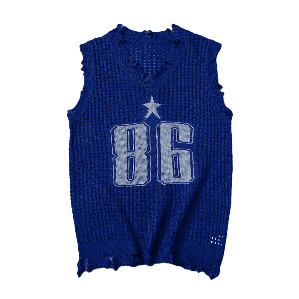 Slavinson Men's Knitted Vest Summer Fashion Letter Pattern Mesh Sleeveless Vest Casual Breathable Knit Soft Vest Top Men US Size