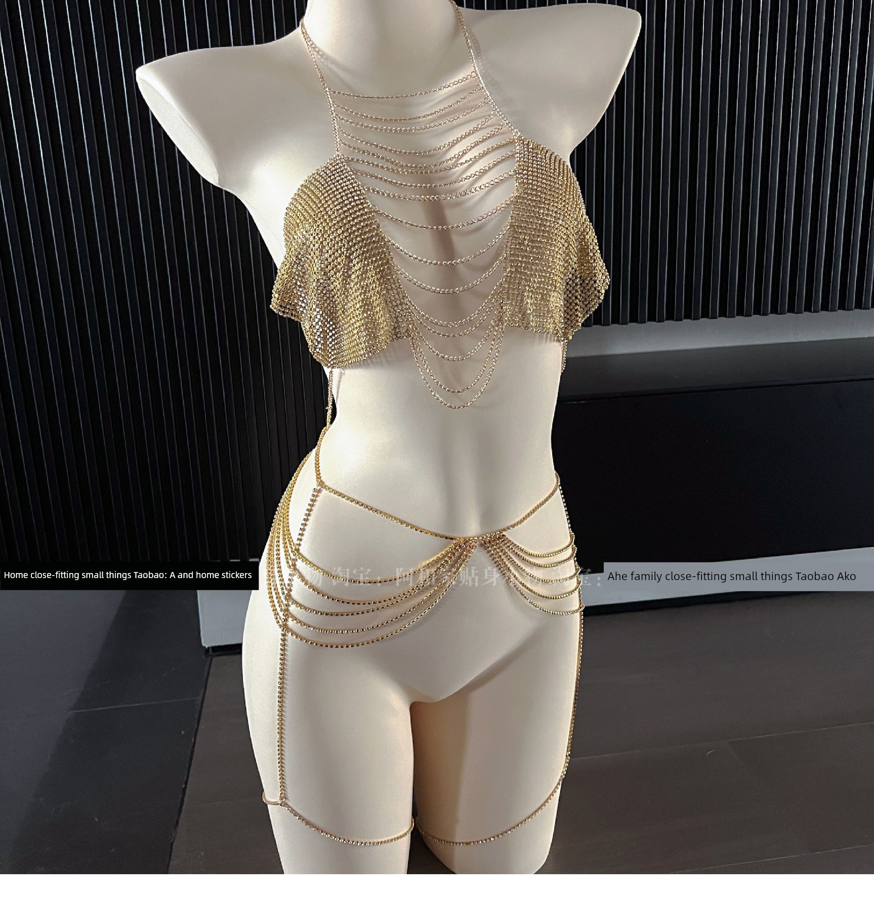 Sparkling Bikini Metal Rhinestone Body Chains Sexy Chest Necklace Waist Chain Leg Bracelet Streamer Qqny Underwear Sets