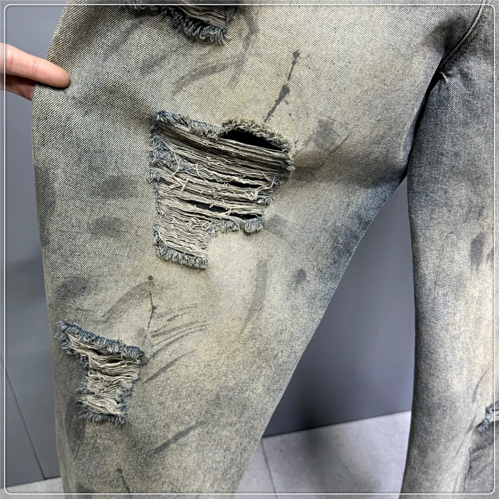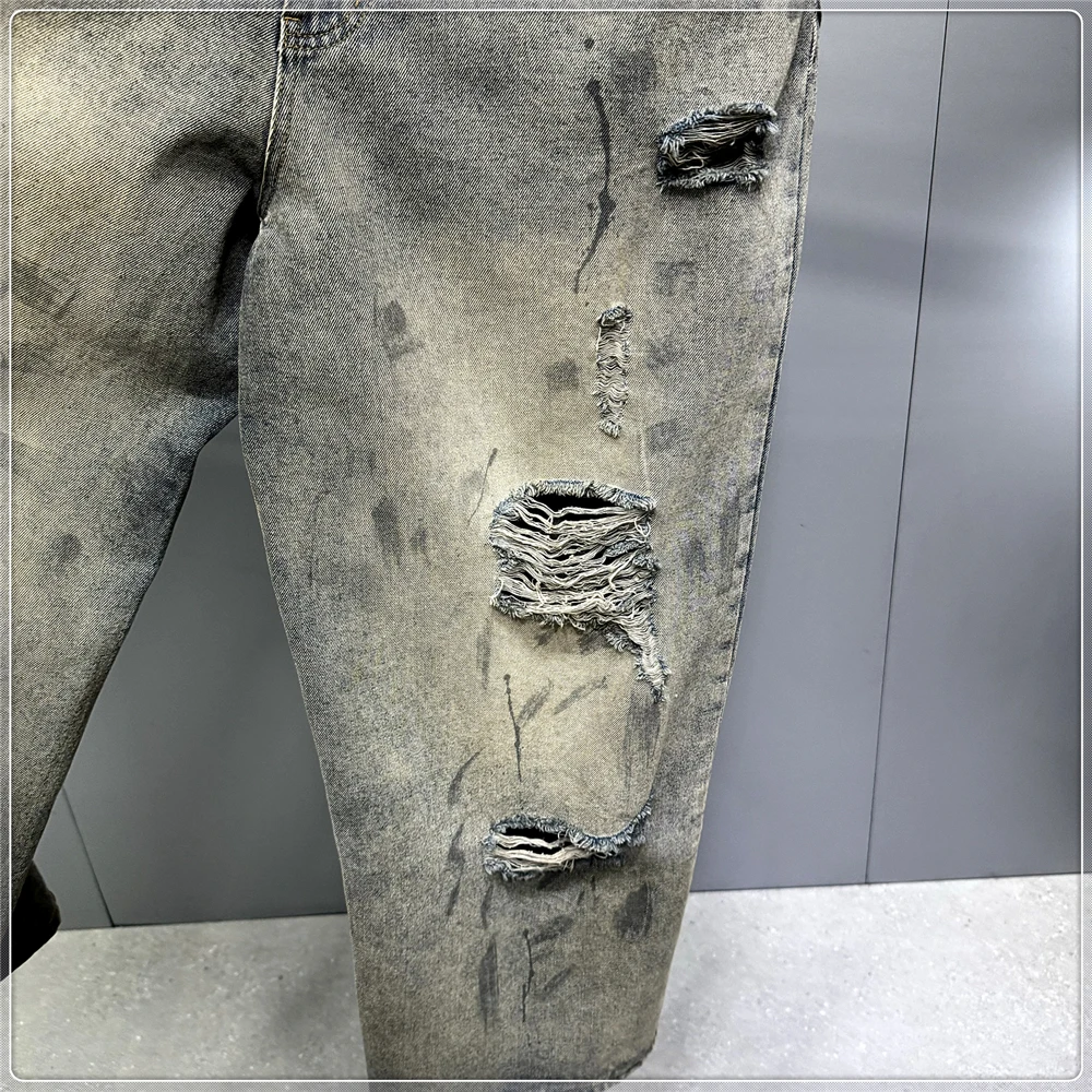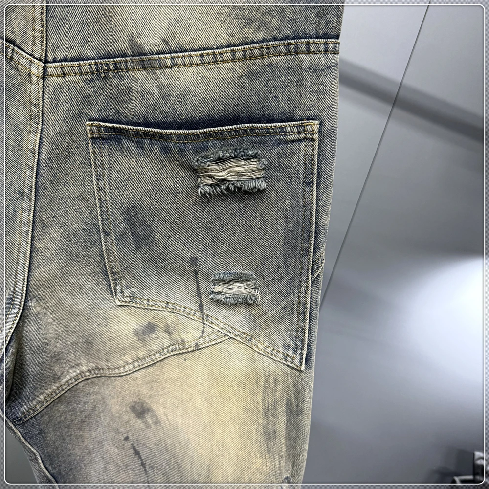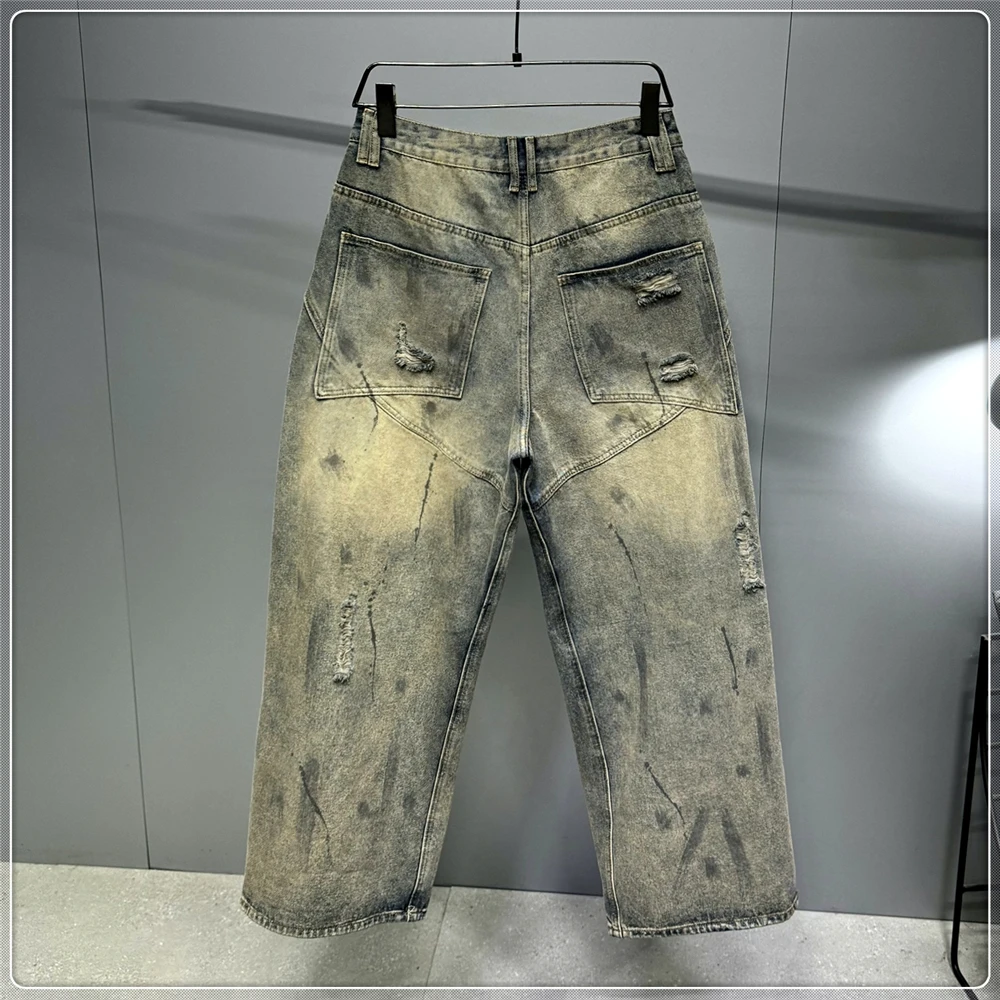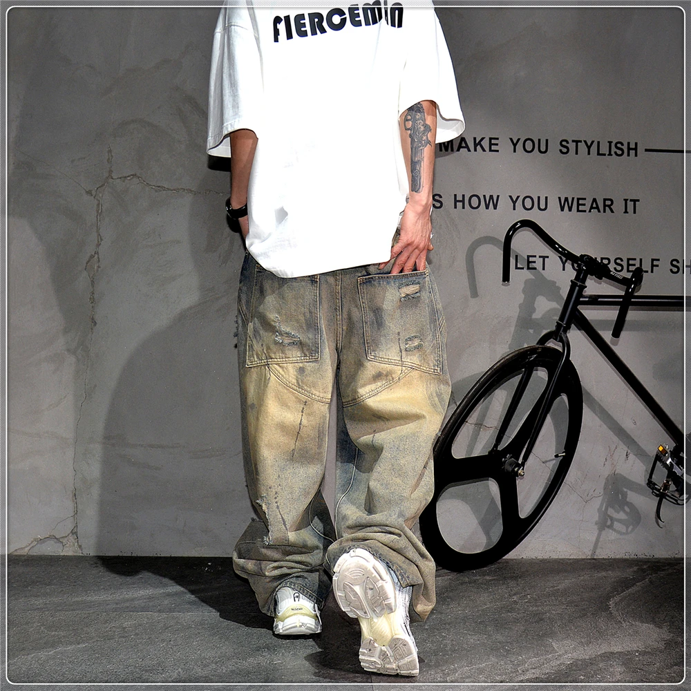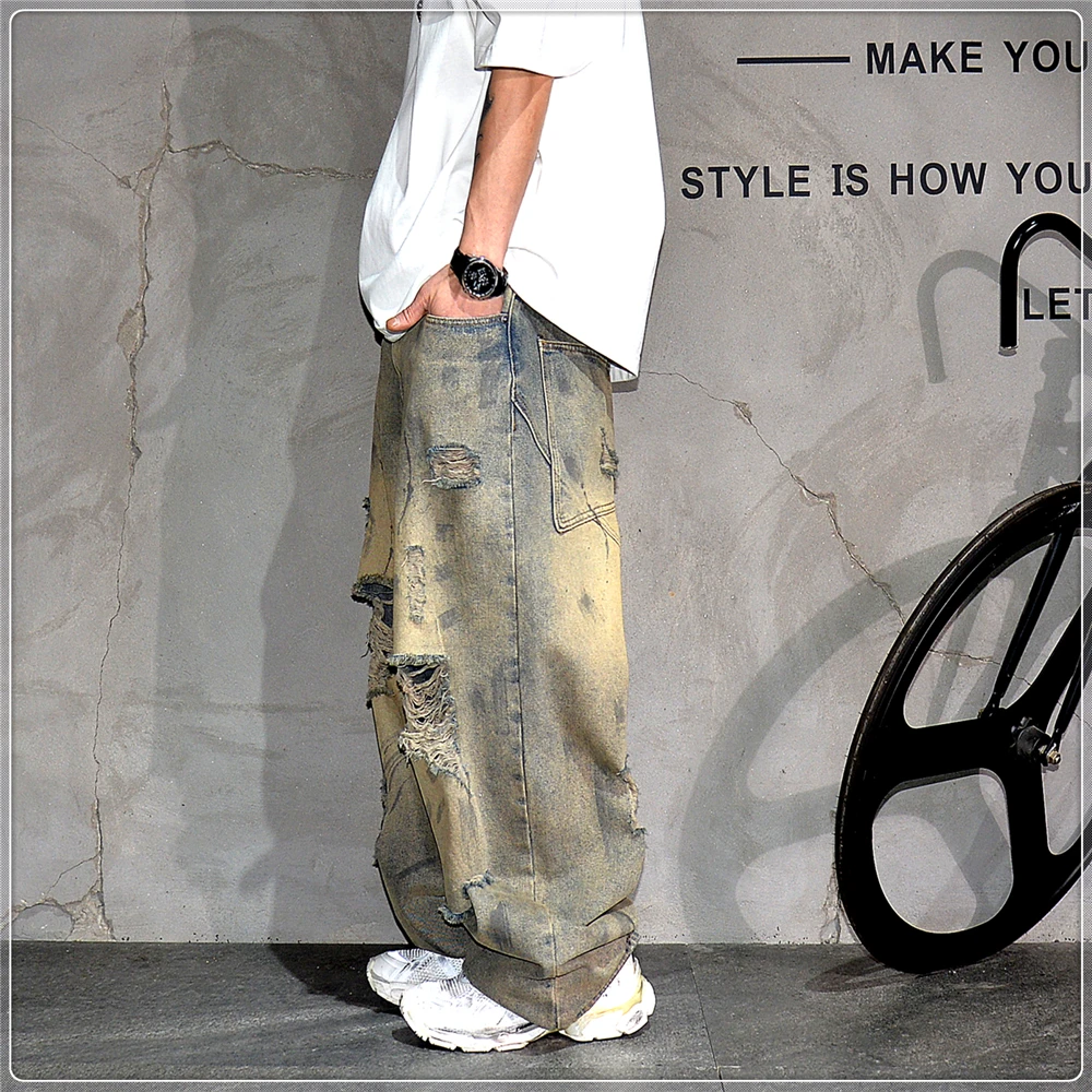 Streetwear Baggy Jeans Men Ripped Distressed Denim Pants Hip Hop Stacked Vintage Skateboard Straight Leg High Quality Trousers