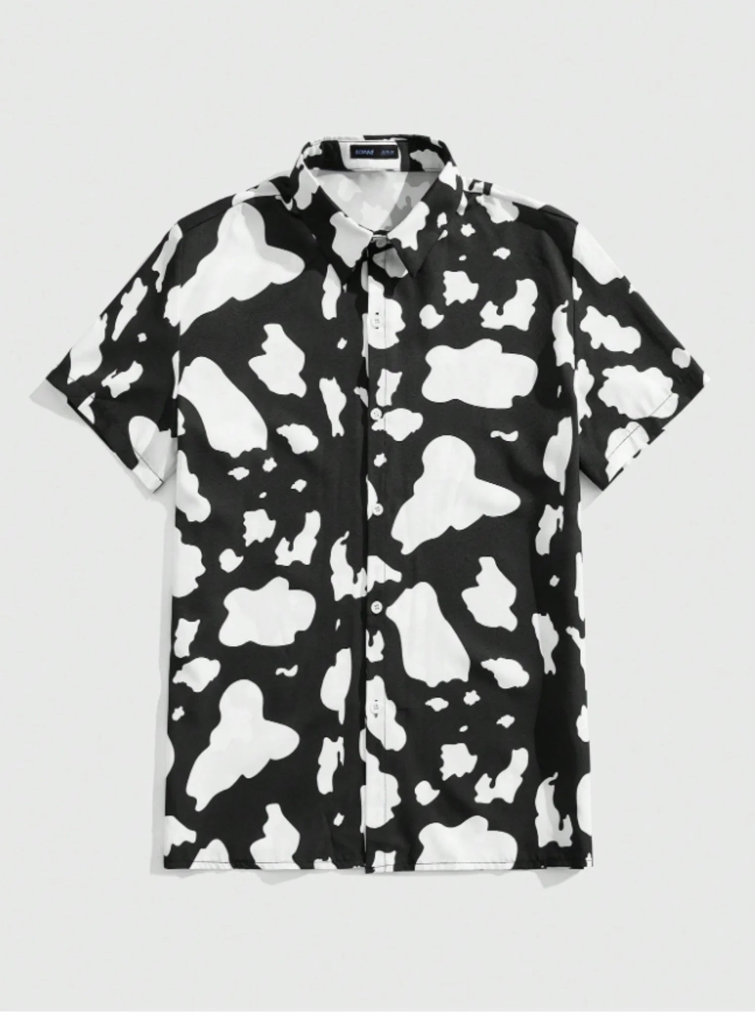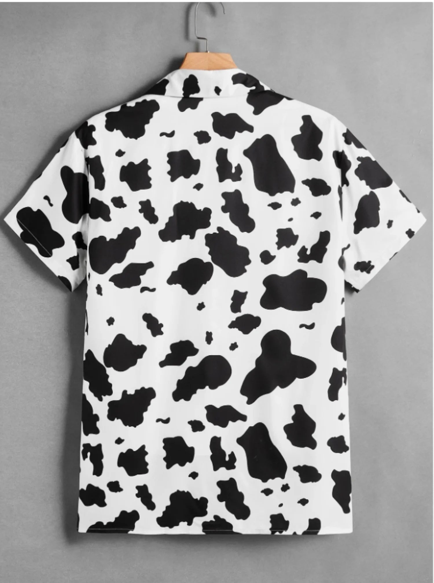Summer Daily Casual Men's Shirts Hawaiian Street Life Men's Cow Print Single Breasted Casual Short Sleeve Shirt Men's Clothing
