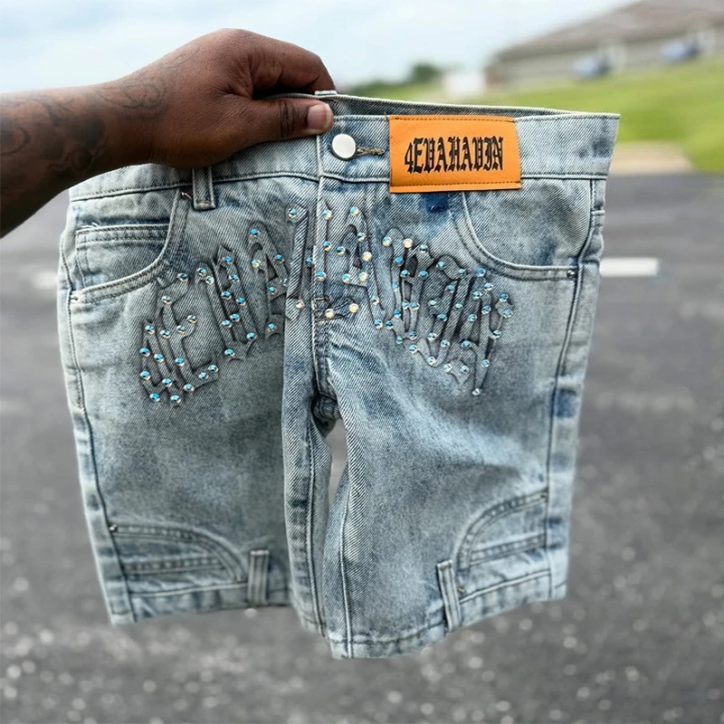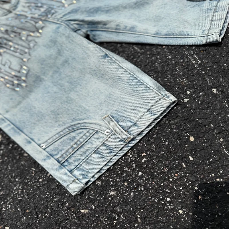 Summer Fashion Diamond Studded Light Blue High Waist Slimming Denim Shorts Y2K Hip Hop Gothic Women Casual Trend Streetwear New