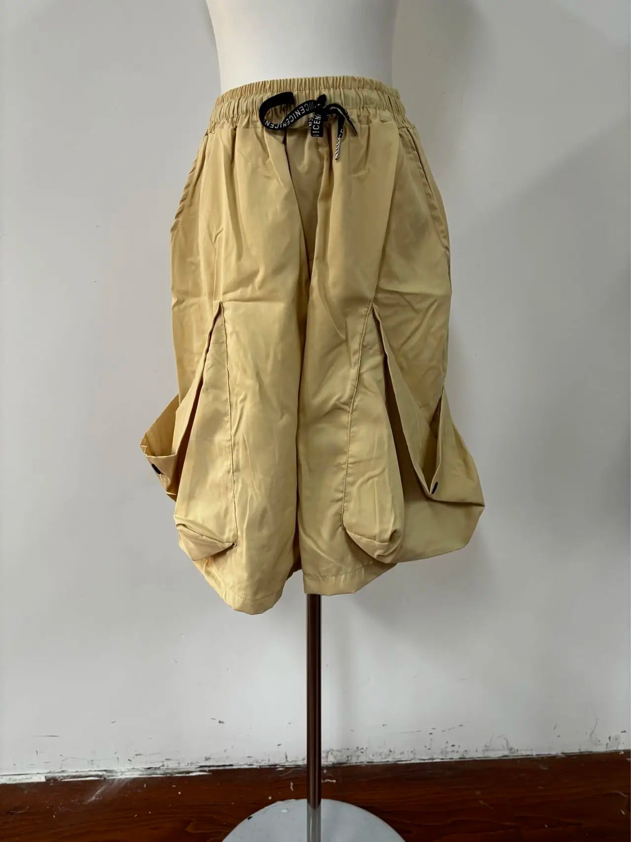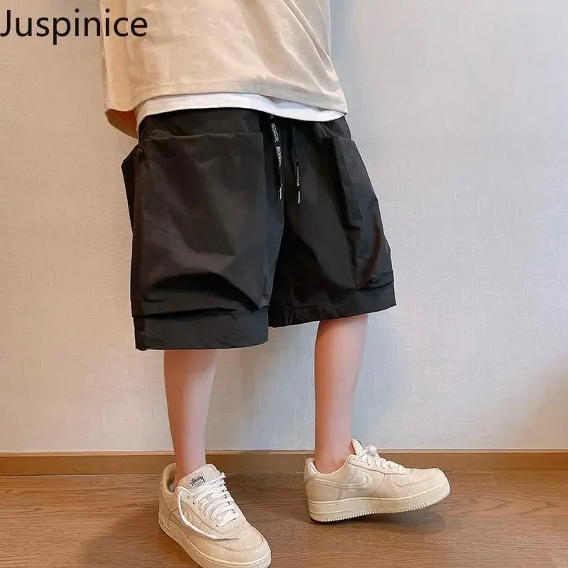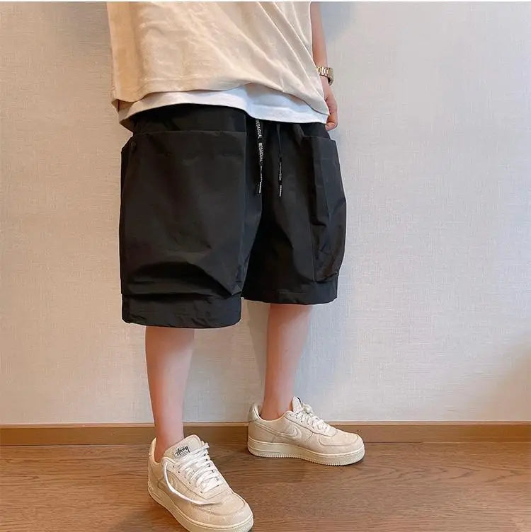 Summer Solid Pockets Large Size Shorts Men's High Street Loose Casual Workwear Five-quarter Pants Men Bottom Male Sportswear