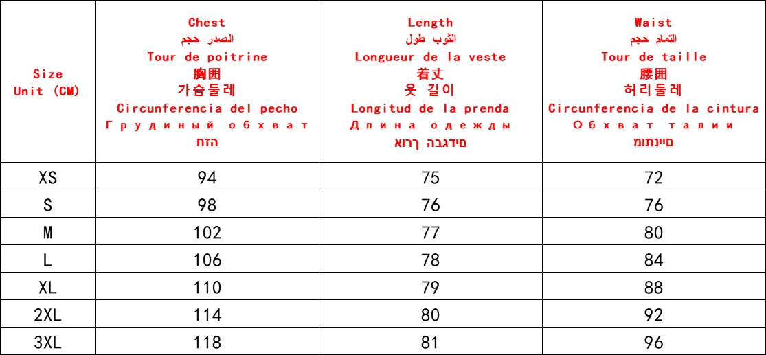 3. All measurements are listed in cm (1cm = 0.39inch). There is a 2-3cm difference according to manual measurement. Please check the measurement chart carefully before you buy the item.