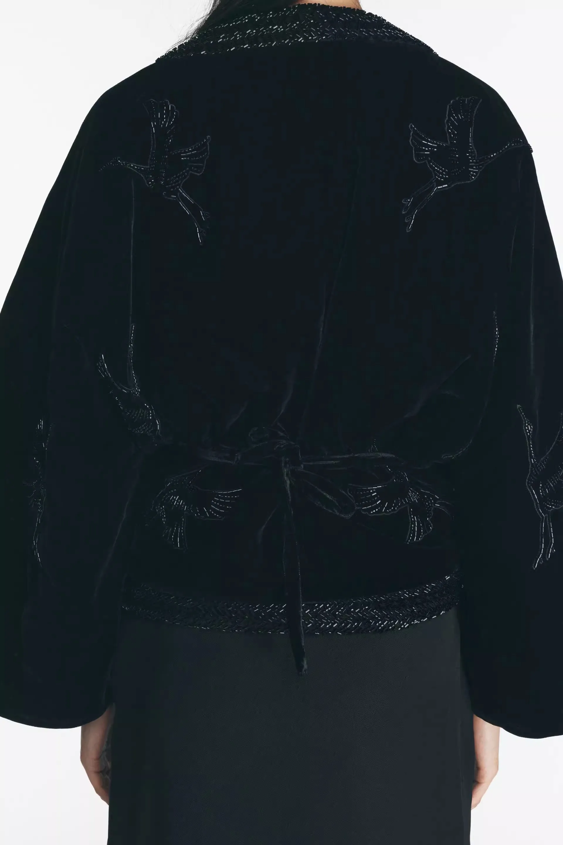Winter New Women's Velvet Kimono Sle Jaet Embroidered Decoration Beads Straight Cut Long Sve V-Ne Coat Regular Thi...