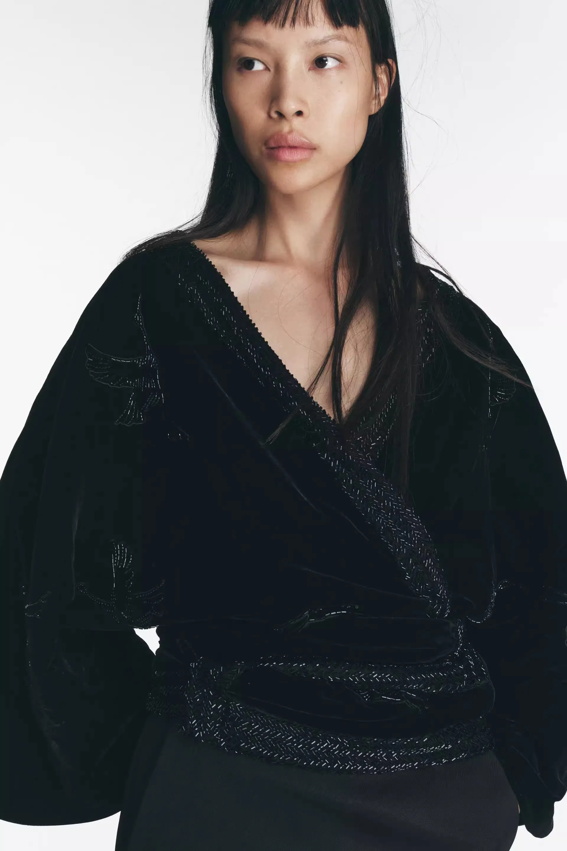 Inspired by traditional kimono design, this coat combines Eastern charm with Western fashion trends.
