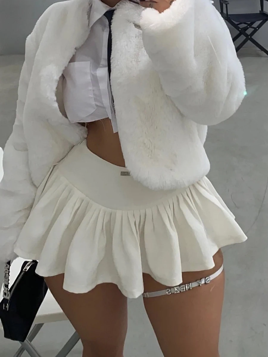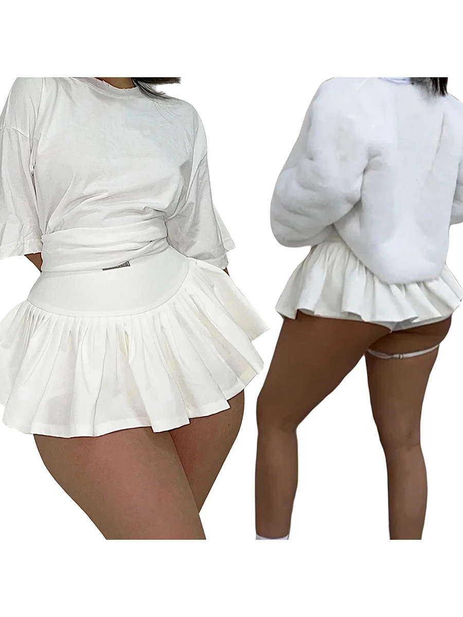 Women Korean Fashion Short Pleated Skirts Hot Girl High Waist Bodycon Vintage White Micro Mini Skirt A-line Skirt Nightclub