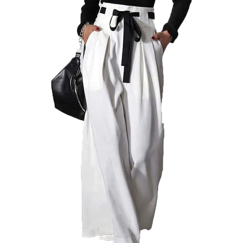 Women's White Pants New Fashion Solid Color Pockets Pleated Drawstring High Waisted Wide Leg Loose Casual Trousers